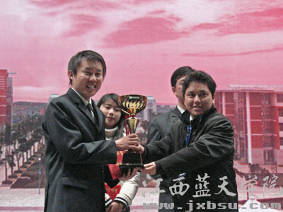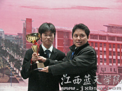 获得营销经理招聘比赛冠军的外语系05四(3)班赵健同学在接受记者采访时说:“学院举办这次大赛是在是太有意义了,不仅让学生学习到应聘技巧,还锻炼了我们在面试时的临场应变能力,希望学院以后多举办此类比赛。”(图:陈旻)