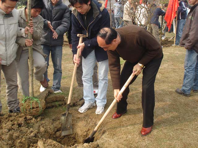 植树之前,汪茂湘向师生宣传了学院开展植树活动的意义。他说,学院将以系为单位,开展为期一个月的植树活动,进一步绿化美化新校园,培养同学们热爱劳动的良好习惯。接着,他带头挥起铁铲,很快就挖好了一个植树坑。这时,师生们也纷纷挥起了工具,火热地干了起来。尽管昨天才刚刚下过雪,天气还十分寒冷,但不一会,大家就干得冒出了汗。到中午收工时,汽车系的师生已植树近50余棵。