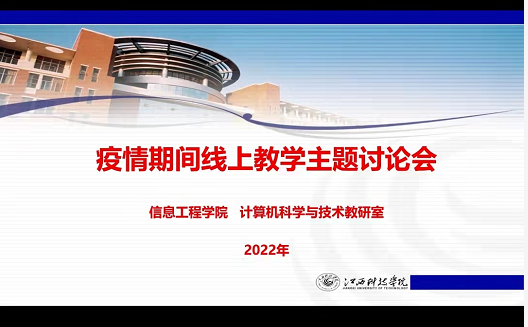江科网讯(通讯员 彭楚南)为进一步提升疫情期间线上教学质量,近期,信息工程学院科学与技术教研室开展线上教学主题讨论会。院长王涛涛、副院长肖华波与全体教研室教师参会。