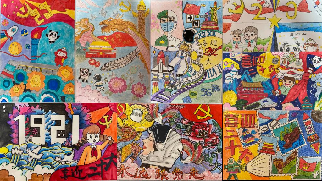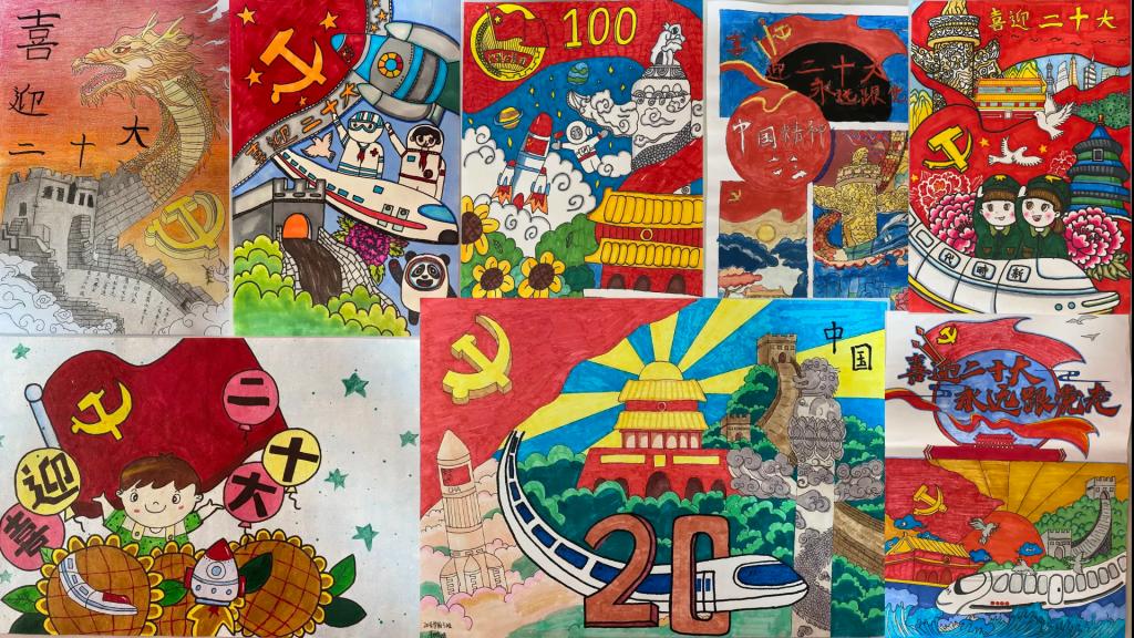 本次展览中,同学们将蓬勃朝气融入画中,一笔一划无不展示出同学们对党、对团的无限深情。他们用色彩斑斓的画作满载对即将到来的二十大的期盼之情以及对国家幸福美满的的祝愿,展现中国共产党在百年风雨中所创下的丰功伟业,彰显新时代青年的昂扬风貌。