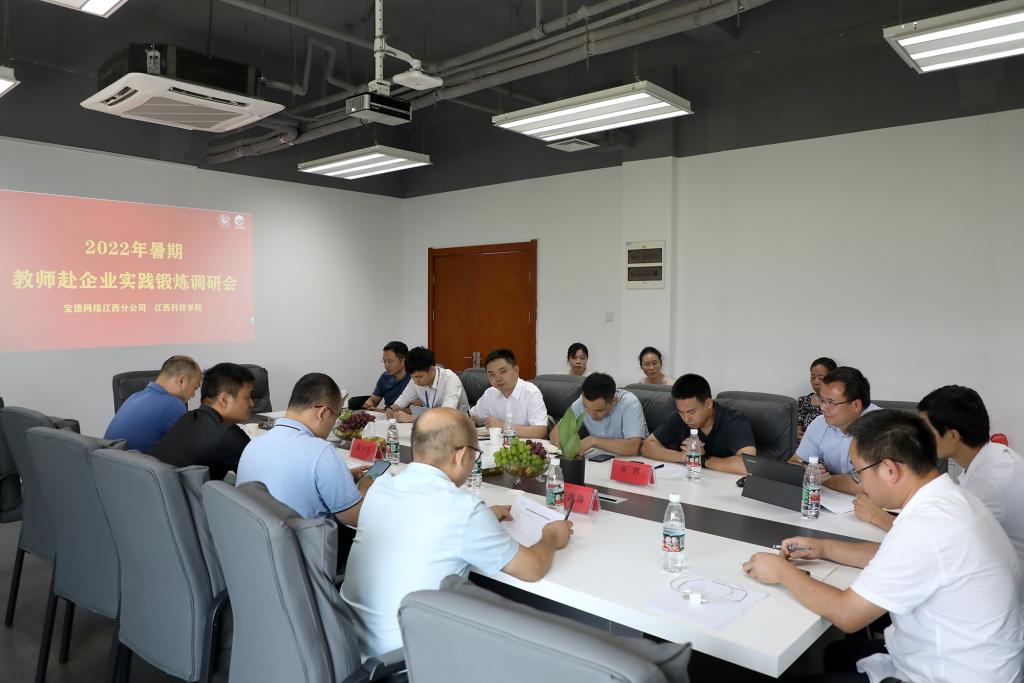 座谈会上,正德公司常务副总经理张雷、宝德江西分公司总经理荣飞飞简要介绍了公司概况,通报我校教师在企业实践锻炼的有关情况,并对我校实施教师企业实践锻炼工作给予高度评价。周小丰处长对教师们在炎炎暑期坚持工作和取得优异成绩给予充分肯定,同时鼓励大家要充分利用这次难得的机会认真学习、虚心请教、总结经验,在和企业成长的同时提升自己专业能力、增长才干。陈辉处长、付海华主任希望与企业成为更加紧密的合作伙伴,进一步加强在人才、平台等方面合作,共同更好地服务地方经济发展。