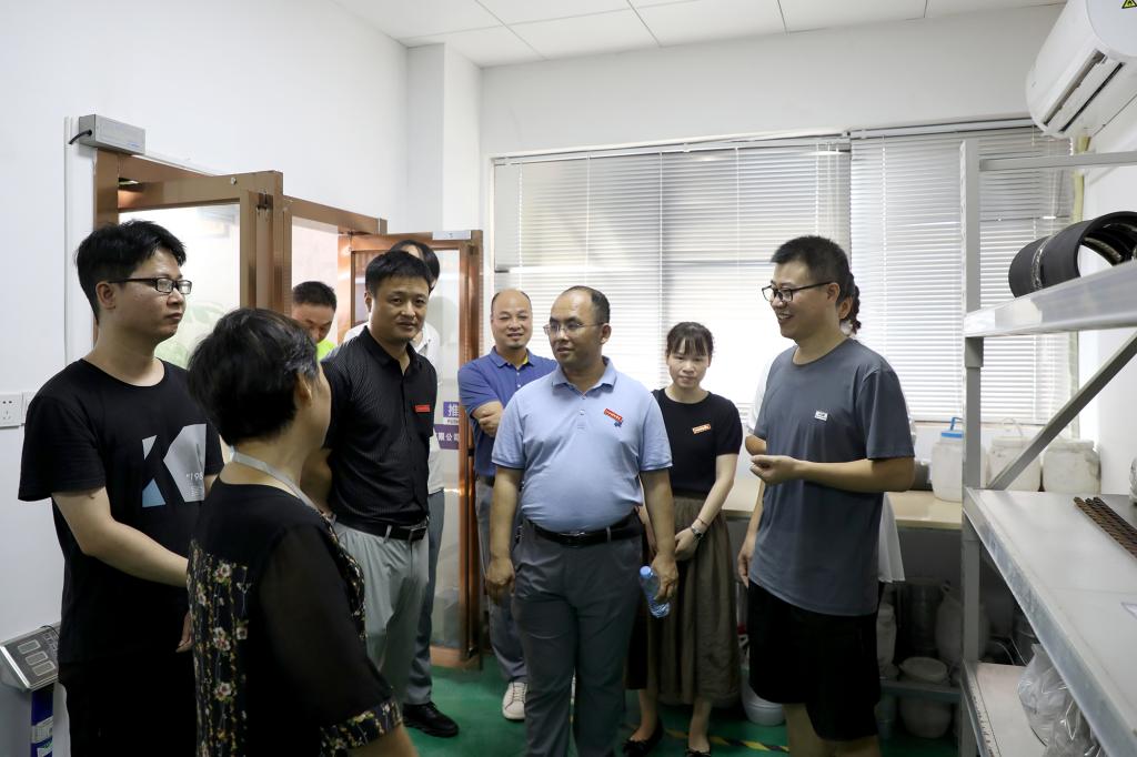 走访期间,周小丰处长、陈辉处长、付海华主任等一行还仔细查看教师工作环境场所,与企业有关人员就职业素养培养、校企双方资源共享等方面进行交流。