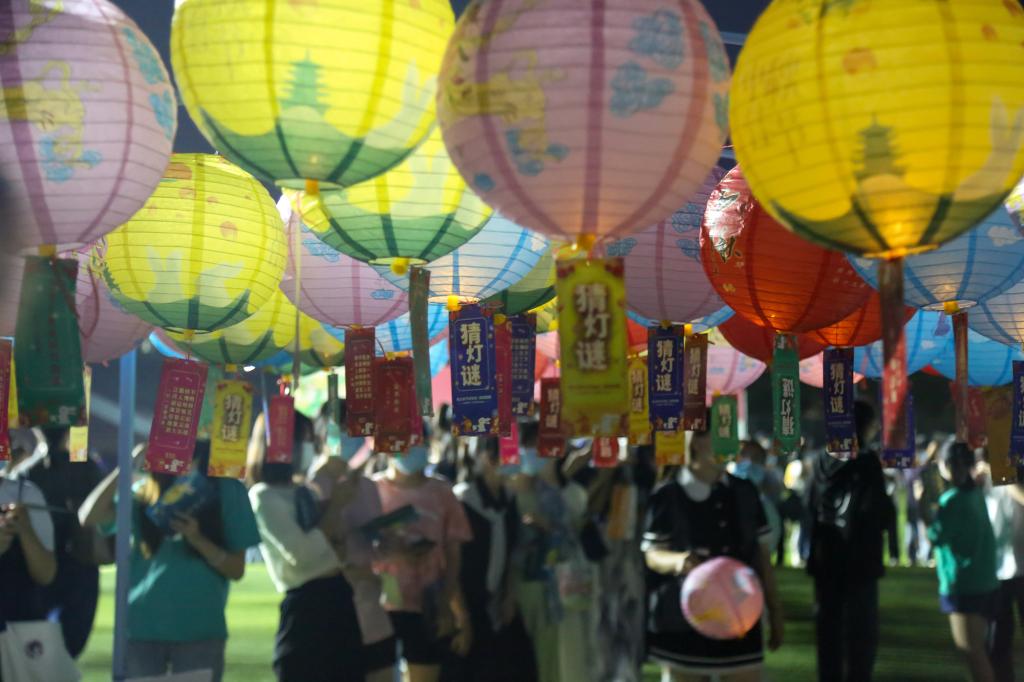 套圈、投壶、猜灯谜、对诗词、歌曲竞猜、汉服展示……中秋节当晚,见微知著大学生网络文化工作组织开展的“月满中秋 情暖江科”主题游园会成为同学们的“宠儿”。参与活动的同学集满印章就有机会兑换江科定制书签、笔、雨伞、笔记本、可乐、团扇、灯笼等小礼物。“团圆不单是面对面的相聚相守,也是同一轮皓月下的‘天涯共此时’。”参与活动的外国语(国际教育)学院大一新生练羽凡坦言,中秋佳节虽然不能与家人团聚,但在温馨、温暖的江科校园里,在老师和同学们的陪伴下,依然感觉幸福。(供图:学工处、各学院、见微知著大学生网络文化工作室)