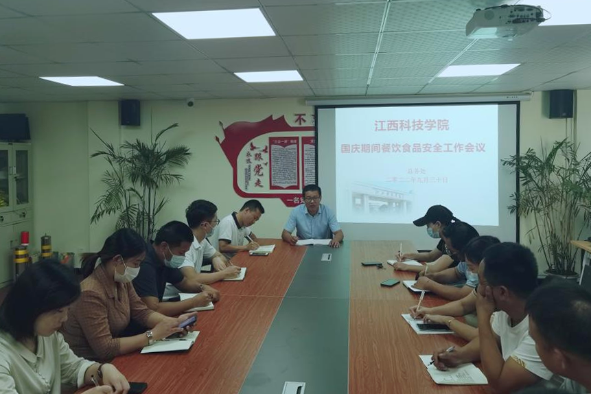 江科网讯(通讯员 汪增辉)9月30日上午,总务处召开会议布置国庆期间餐饮食品安全工作,总务处膳食科全体人员以及各食堂、餐馆等经营场所的经理、负责人参会。