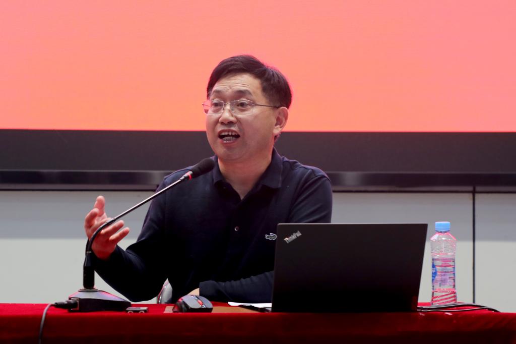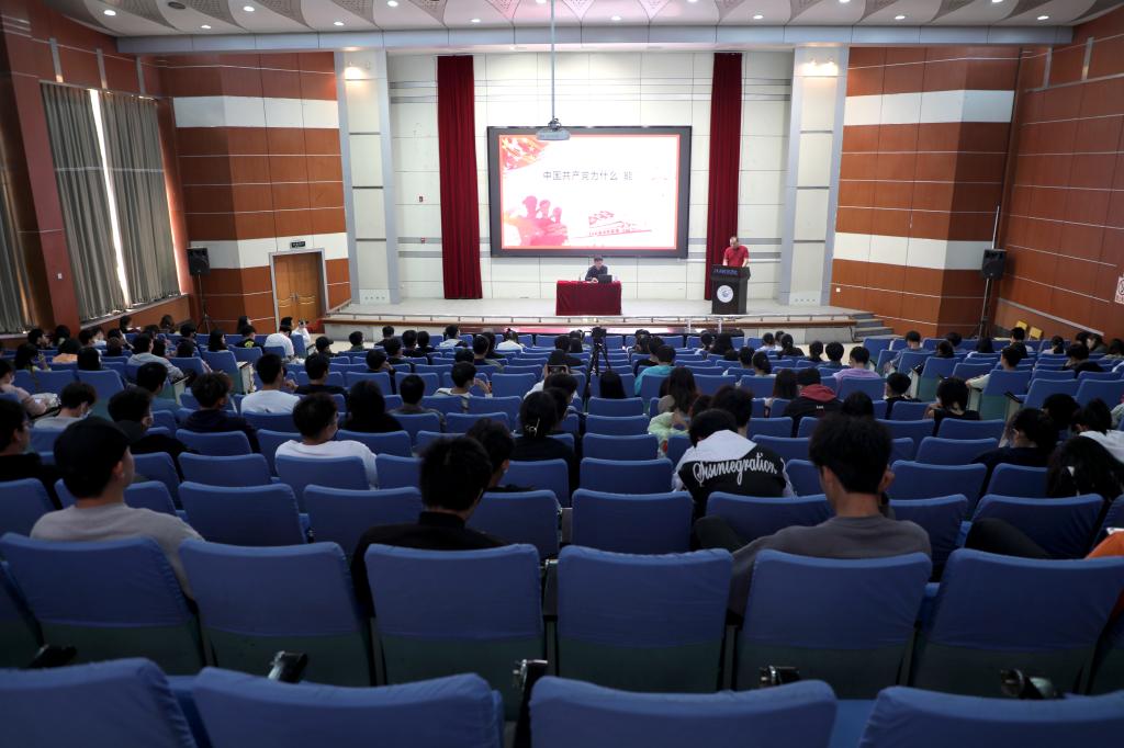 马克思主义学院院长熊春泉以“中国共产党为什么能”为主题,结合丰富的案例,从坚定社会主义方向、坚持马克思主义中国化、强大的国防基础和深厚的文化根基等四个方面向同学们系统阐述中国的和平崛起。他表示,在重视形式的同时还要强调实质,寻找形式和实质之间的平衡;要明白今天要如此重视党的建设的原因是因为我们的一切制度的设置都是以共产党的先进性为前提。