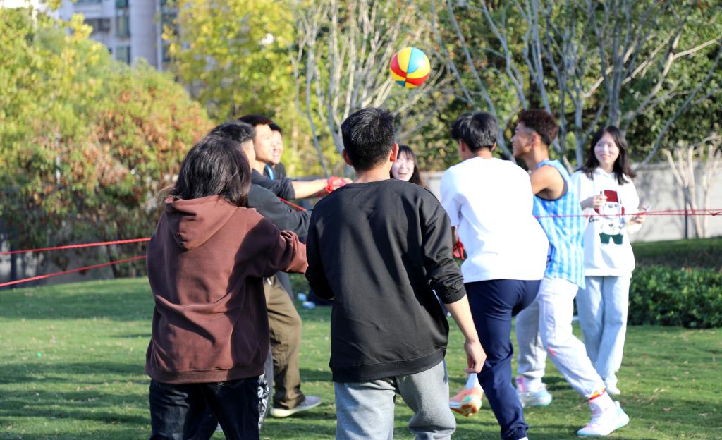 本次活动设置了画队旗、人体“拷贝”和同心鼓等三项内容。活动中,同学们共分成三组,各小组全心投入、团结协作,小组间你追我赶、奋勇争先。活动过程气氛热烈,充满乐趣。
