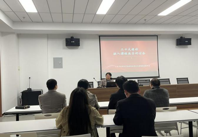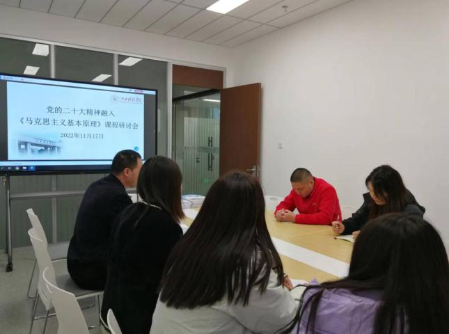 习近平新时代中国特色社会主义思想概论教研室全体教师就学习研究阐释宣传党的二十大精神、用习近平新时代中国特色社会主义思想凝心铸魂等进行研讨。会议认为,党的二十大报告是一篇光辉的马克思主义纲领性文献,思想深邃、立意高远、内涵丰富。教师们表示,将认真学习领会党的二十大精神,趁热打铁、迅速安排,在今后的课堂教学中要及时更新教学内容、创新教学方法,让党的二十大精神更好、更活、更深地融入进课堂。