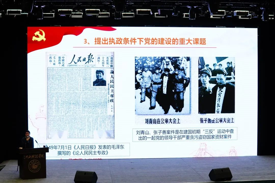 为深入学习宣传贯彻党的二十大精神,扎实推进二十大精神进校园、进课堂、进头脑,努力培养更多堪当民族复兴重任的时代新人,11月24日晚,文化与传媒学院在映山红剧场举行党的二十大精神宣讲会。校级宣讲团成员、马克思主义学院教师叶红应邀主讲。2022年党的基本知识教育培训班学员、学生干部共计150余人到场聆听。叶红以“自我革命是党跳出历史周期率的第二个答案”为主题,从“我们已经找到一条新路,这条新路就是民主”、“两个务必进京赶考”和“提出执政条件下党的建设的重大课题”等多个方面对党的二十大精神全面、深入、系统地进行解读,进一步深化同学们对党二十大精神的理解和领悟。