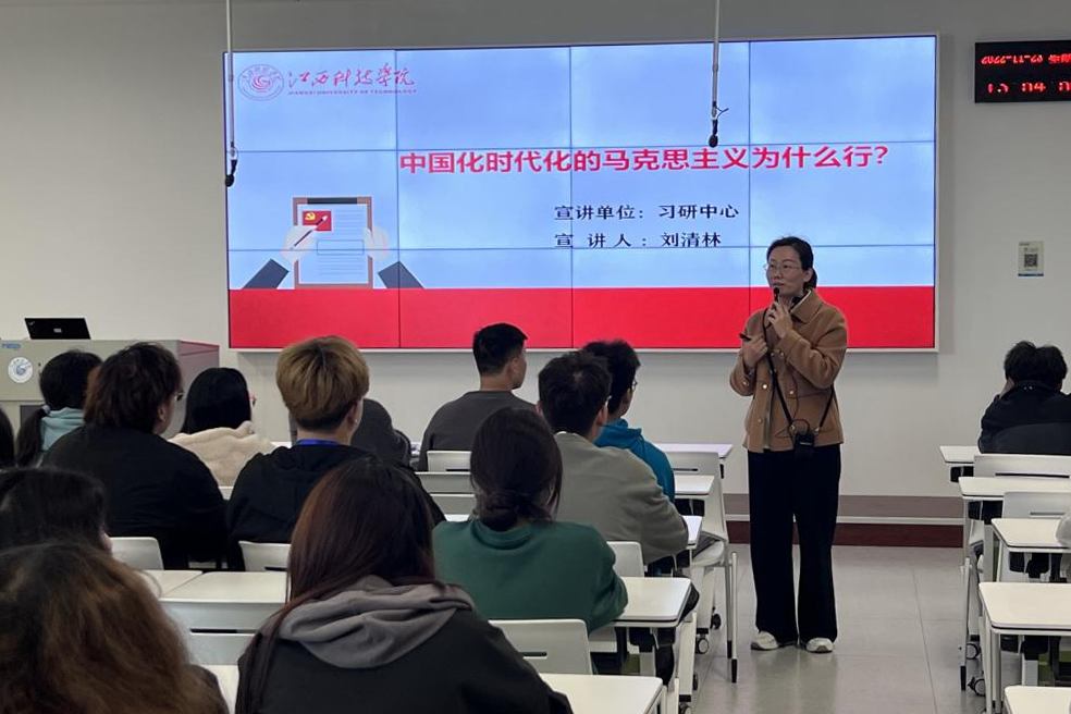刘清林主要从“马克思主义为什么行”和“中国化时代化的马克思主义为什么行”两个层面展开阐述。她指出,实践永无止境,创新永无尽头。以中国式现代化推进中华民族伟大复兴的号角已经吹响,作为时代新青年,同样应该在新时代新征程中奋力拼搏。一是端正思想态度,理解党和国家未来的发展理念,积极响应党和国家的号召,在日常中要注重个人品行修养和精神世界的建设。二是牢记使命任务,志存高远,勇担时代使命,将个人理想与时代发展相结合,为祖国未来的发展添上浓墨重彩的一笔。