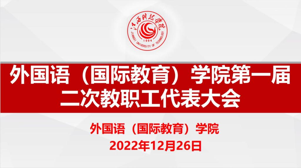 12月26日,外国语(国际教育)学院召开第一届二次“教代会”。该学院院长李君、党委书记卞杰、副院长游娟出席。会议首先通报此次“教代会”筹备情况和代表资格审查情况。李君作《学院工作报告》,全面客观总结2022年学院工作,明确2023年学院工作的方向和重点任务及具体措施。卞杰从党建工作、学生工作、特色亮点、创新思考等方面作述职报告。游娟从学院重点工作、亮点工作、创新工作进行述职。代表们分三组对《学院工作报告》《学院工会工作报告》进行认真审议和讨论,积极为学院建设与发展提出意见。主席团成员听取各组的讨论情况汇报以及代表们的意见和建议。大会闭幕式表决通过《学院工作报告》决议和《学院工会工作报告》决议。