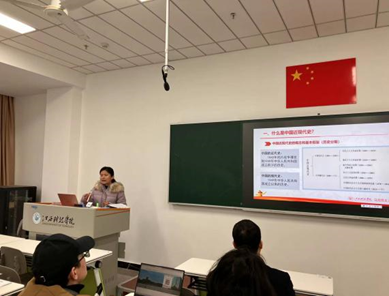 毛泽东思想和中国特色社会主义理论体系概论教研室李满满老师就《概论》课程导论部分进行内容阐述,围绕“教材及参考资料”“学生”“教学内容”“教学方法”“反思疑问”进行逐一讲解,并分享个人心得。参会教师踊跃发言,就教学内容提出意见与建议。