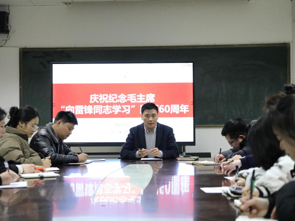 江科网讯(通讯员 汤佳伟)为弘扬雷锋精神,推动“学雷锋、树新风、讲文明、做好人”活动深入开展,2月27日下午,教育学院举行纪念“向雷锋同志学习”题词六十周年座谈会。学院党委书记阮保俊、党委专职副书记汤佳伟与主要团学干部、社团干部参加会议。