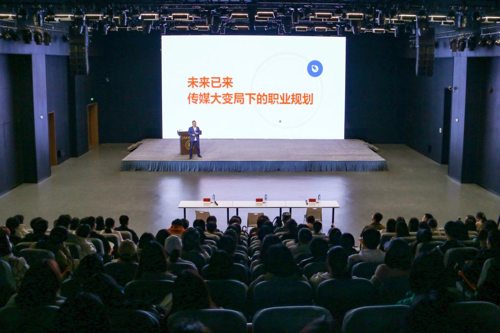 吴志刚围绕“未来已来,传媒大变局下的职业规划”这一主题,为大家深入分析当前传媒业态与传媒生态的发展现状与未来趋势,从主流媒体发展谈到新媒体的变革再到自媒体的盛行,分享了AI主播、国内外智能软件、数据行业等方面的最新变化,全面剖析融媒体的独特优势和未来新媒体行业对人才的职业要求。他鼓励同学们努力学好专业知识,扎实自身基本功,刻苦钻研一项核心技能,多阅读,多实践,勇于创新和突破。在未来的学习甚至工作的道路上坚定地告诉自己“永远保持着积极向上的良好心态”。