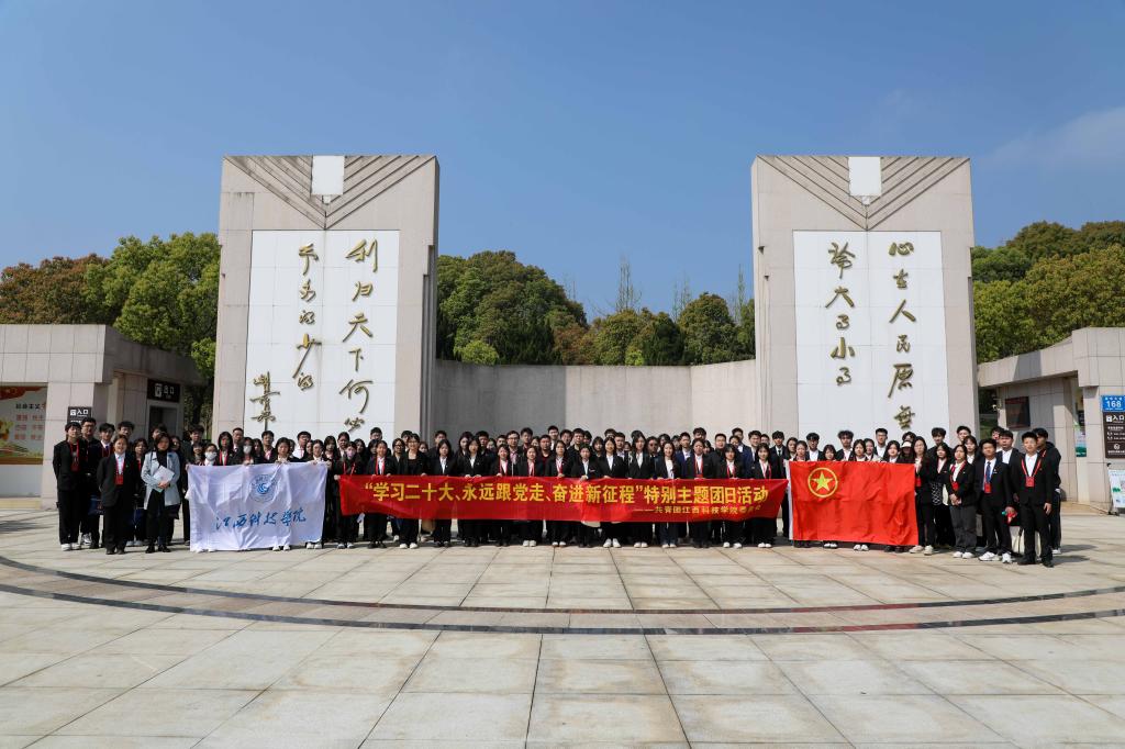 江科网讯(实习记者 吴悦)为深入学习贯彻党的二十大精神,教育引导团员青年开展以理想信念教育为核心的爱国主义教育、革命教育,夯实青年听党话、跟党走的思想根基和精神力量,4月1日,我校团委组织各二级学院团委书记、兼职副书记,第十二期“蓝园之星”大学生骨干培训班全体学员,前往共青城市富华山耀邦陵园,开展“学习二十大、永远跟党走、奋进新征程”特别主题团日活动。