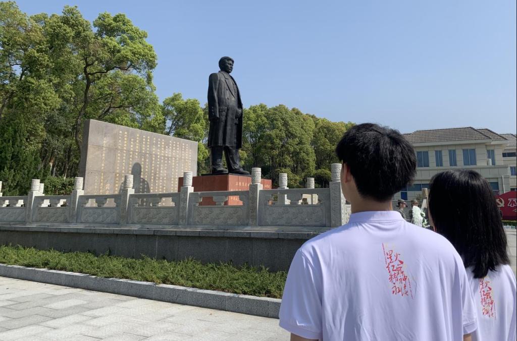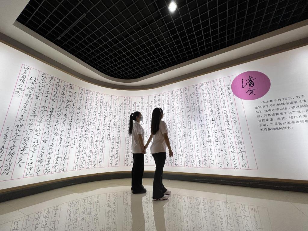 在方志敏烈士纪念馆,同学们在方志敏烈士墓前列队肃立、默哀,表达对先烈的崇敬和缅怀。大家还来到陈列室、烈士纪念广场、静思湖、守纯轩、朗读亭、筑梦墙等地深入了解方志敏烈士的革命事迹与伟大精神。“到那时,到处都是活跃的创造,到处都是日新月异的进步,这时,我们的民族就可以无愧色地立在人类的面前。”馆内,同学们细细重温《可爱的中国》《清贫》等文章,感受方志敏作为一名共产主义战士对党和革命事业的赤胆忠心、对理想信念的执着追求。