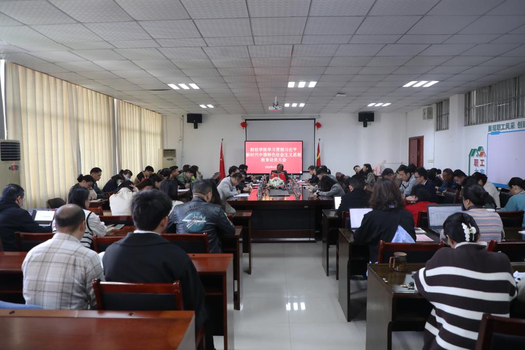 江科网讯(通讯员 李杰)4月26日上午,财经学院召开学习贯彻习近平新时代中国特色社会主义思想主题教育动员会。校党委委员、副校长陈辉,校主题教育第一指导组成员耿卫平、杨凯,财经学院党委全体班子成员及全体党员、全体辅导员、民主党派代表、学生党员代表参加会议。会议由学院党委书记李亚新主持。