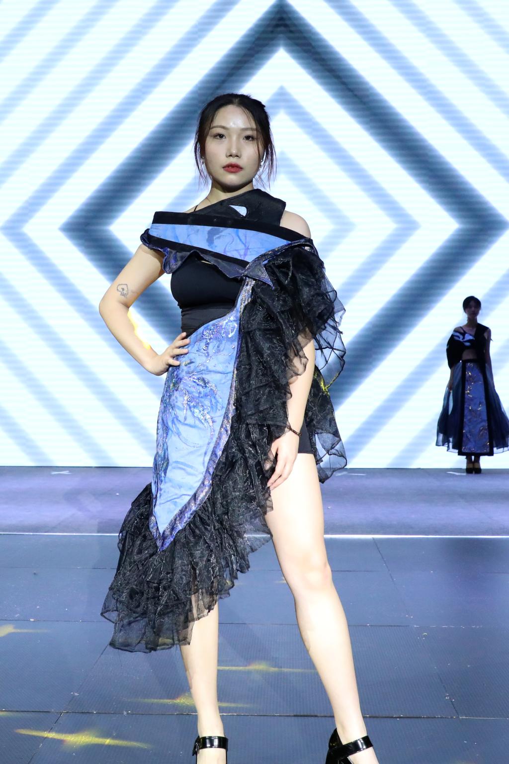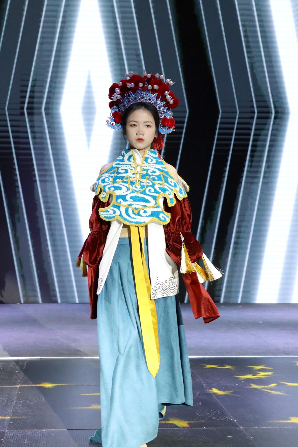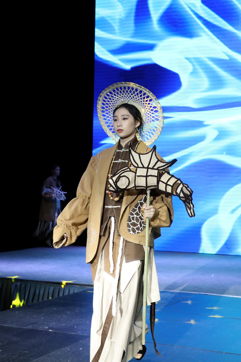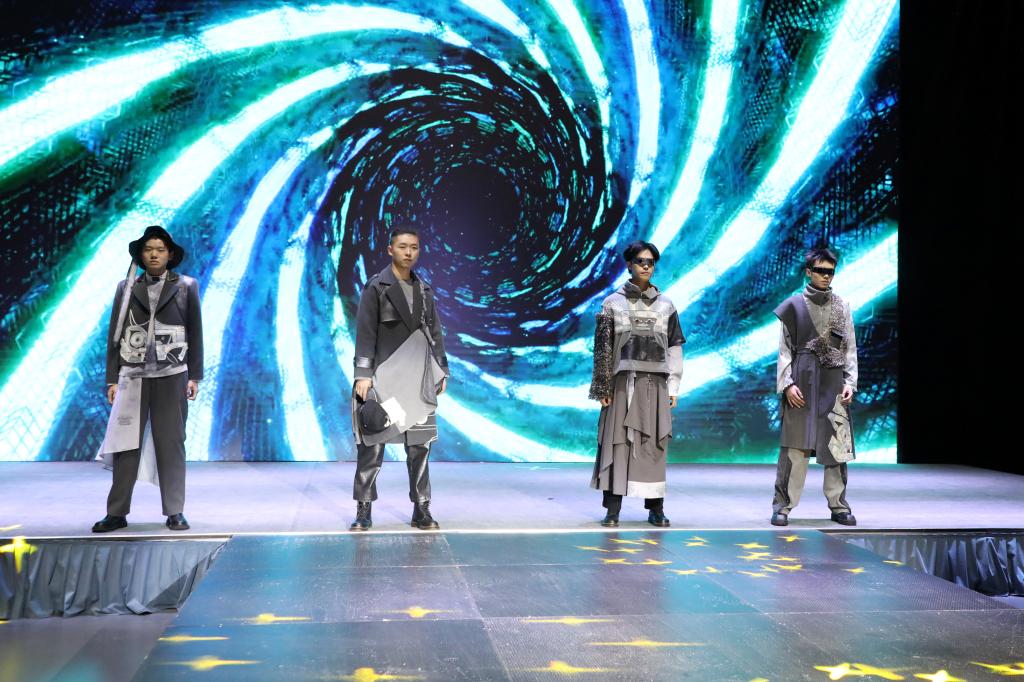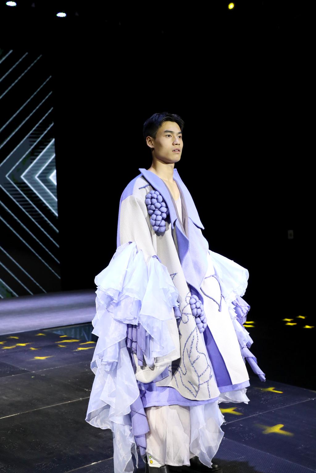 多样化的剪裁设计、大胆的色彩搭配、各类创意元素的汇聚……毕业生们围绕“互生”这一主题,以铭记历史、开放包容、精益求精的态度,就中华文化、传统经典、时尚创新、自然生态、环境保护等展开系列设计。以明朝锦衣卫的飞鱼服及其花纹样式为主要灵感的《锦衣飞将》、创意来源于江西“瓷都”景德镇青花瓷的《以瓷载道》、将剪纸艺术与现代服装制作工艺相结合的《剪艺》……当天参加走秀的118套服装设计作品,展示了学生设计师们“脑洞大开”的艺术灵感。在T台上走秀的学生模特或身姿优美、或阳刚俊朗,散发出青春的激情与活力。