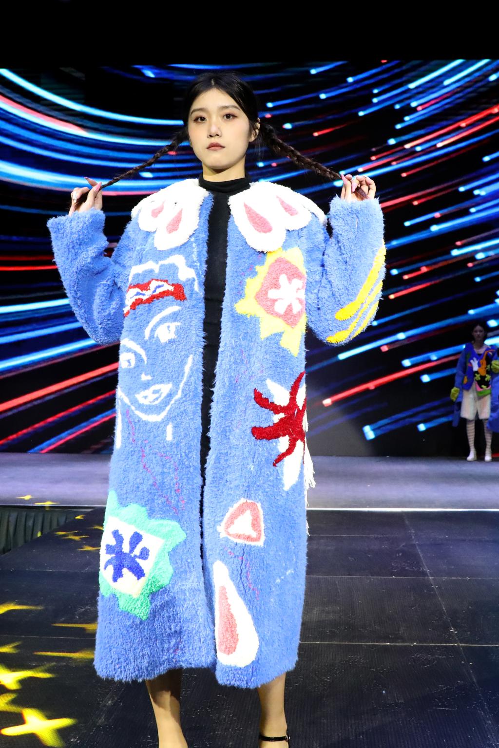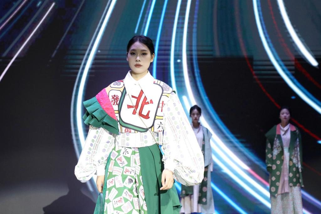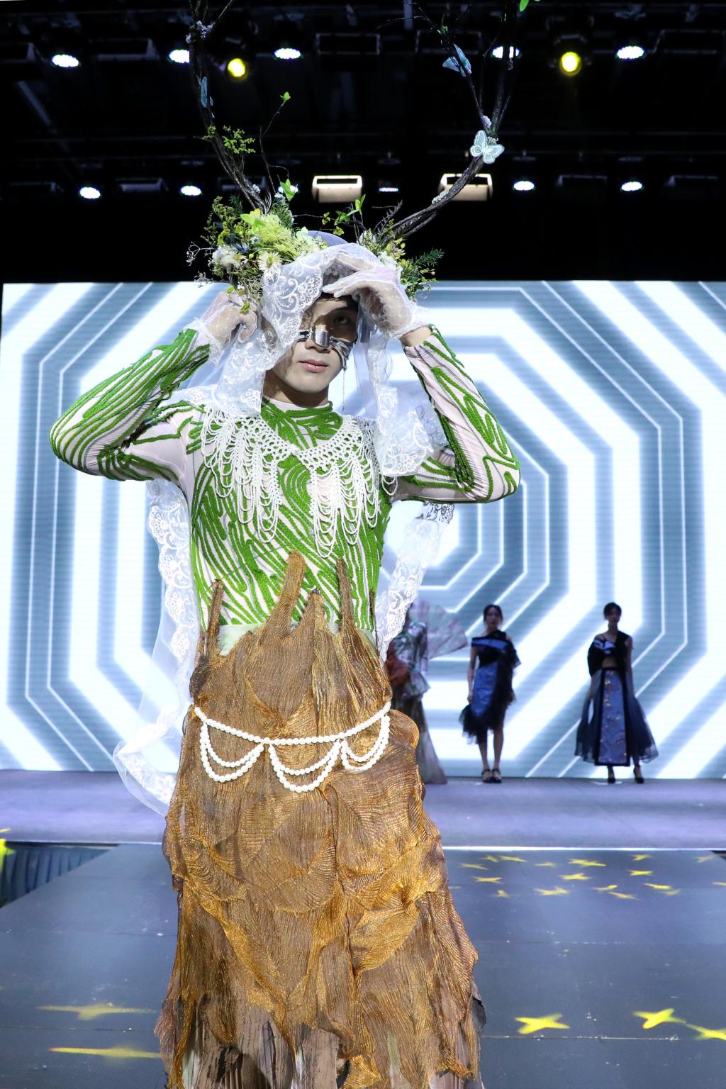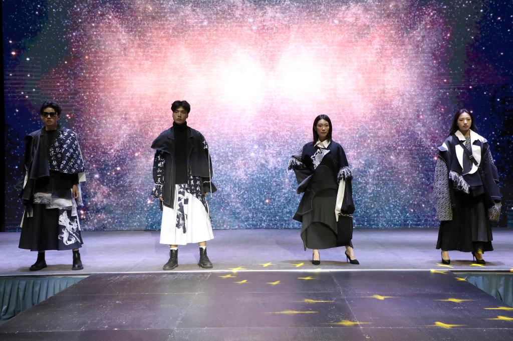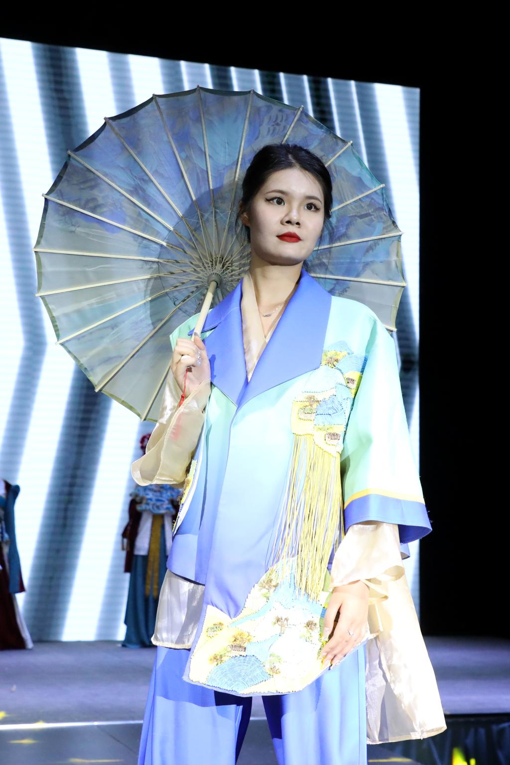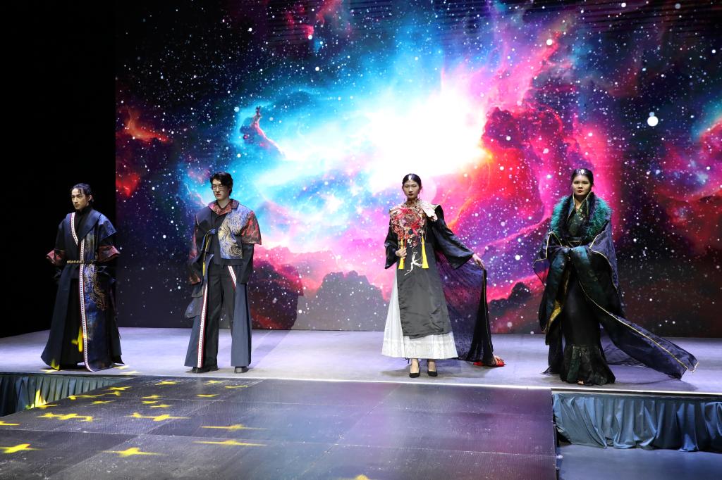 多样化的剪裁设计、大胆的色彩搭配、各类创意元素的汇聚……毕业生们围绕“互生”这一主题,以铭记历史、开放包容、精益求精的态度,就中华文化、传统经典、时尚创新、自然生态、环境保护等展开系列设计。以明朝锦衣卫的飞鱼服及其花纹样式为主要灵感的《锦衣飞将》、创意来源于江西“瓷都”景德镇青花瓷的《以瓷载道》、将剪纸艺术与现代服装制作工艺相结合的《剪艺》……当天参加走秀的118套服装设计作品,展示了学生设计师们“脑洞大开”的艺术灵感。在T台上走秀的学生模特或身姿优美、或阳刚俊朗,散发出青春的激情与活力。