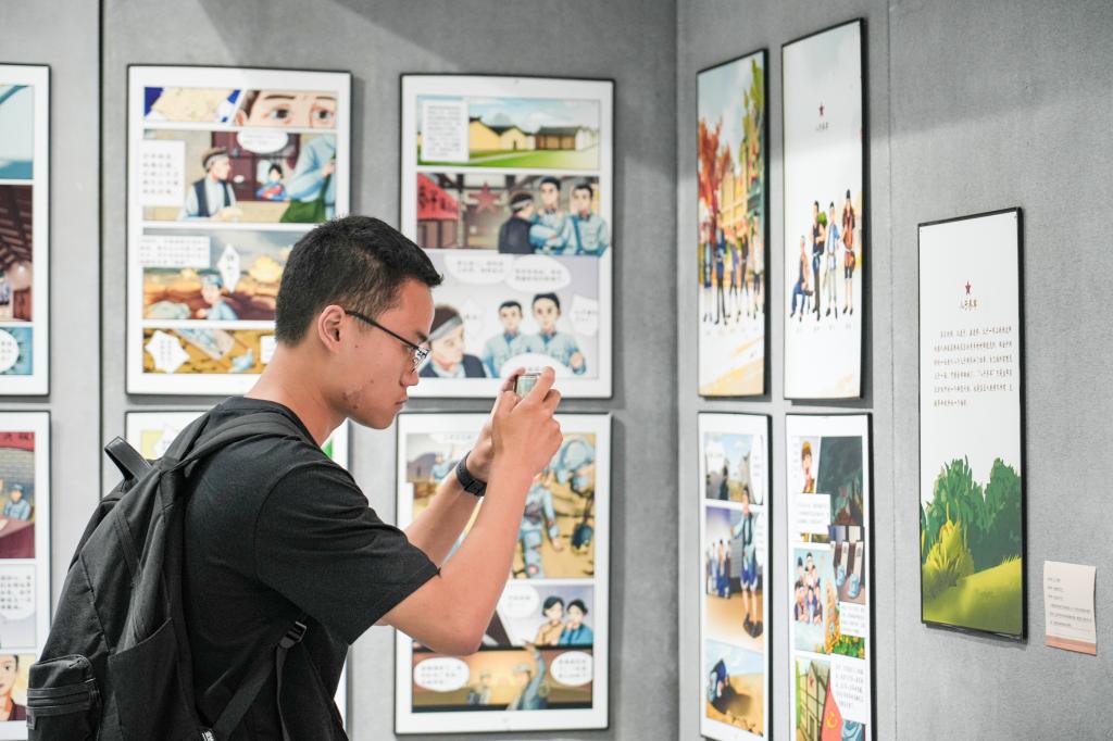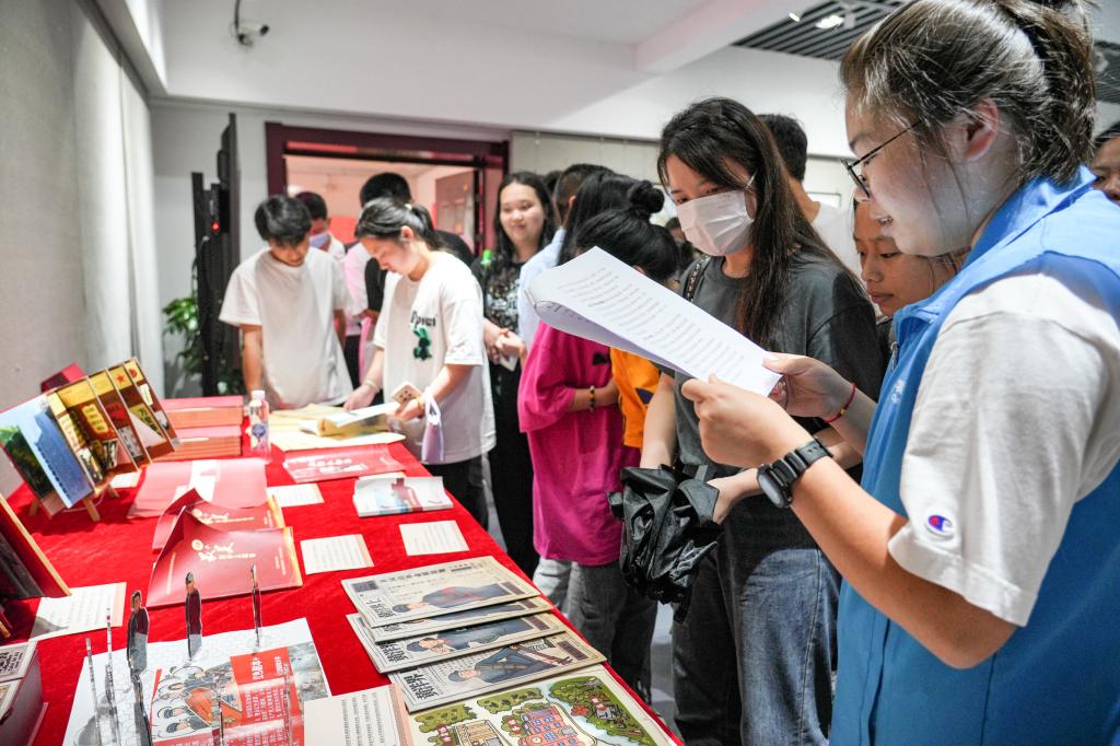 展会现场集中展示江西青年大学生在“红色走读”中展现的智慧和创意。“红色走读”视频、红色书籍、红色剪纸、红色文创、红色模型、红色动漫、红色绘画……一件件走读成果作品让师生们深刻感悟先烈的英雄功绩。在我校布置展出的《以舞艺为媒 续红色血脉》全省高校红色文化实践“十佳案例”展台前,共展出以《红草鞋》《岁月如歌》《爱心厨房》等红色题材作品为代表的一系列育人、实践、科研与舞台成果。音乐舞蹈学院“星火红舞班”王可宁同学为大家进行案例讲解。她表示,案例旨在向当代青年学子传递革命先辈坚定信念、一往无前、不怕牺牲、敢于捐躯的崇高精神,勉励新一代年轻人,应当接过传承红色基因的接力棒,发扬老一辈无产阶级革命家的革命精神。