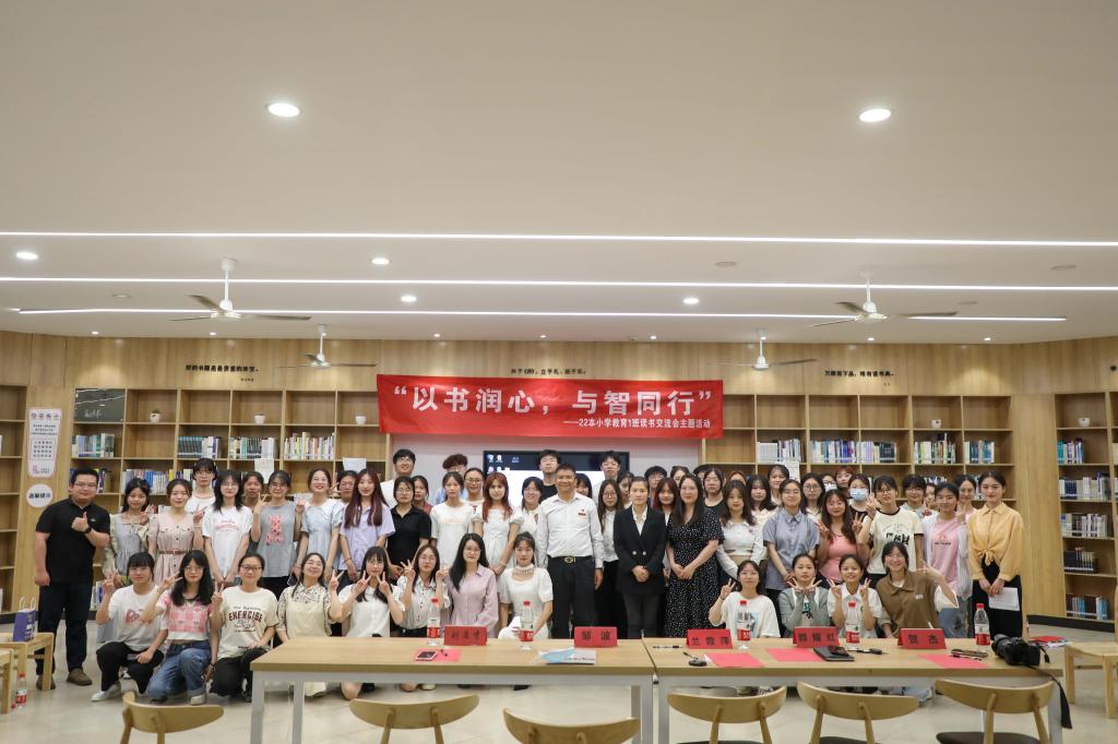 江科网讯(通讯员 陈苏 实习记者 吴悦)5月25日下午,教育学院22本小学教育1班在图书馆二楼醉翁阁开展以书润心,与智同行”读书分享会活动。协同创新中心主任、该班挂点班主任邹波同教育学院院长兰霞萍、教师代表一同参加活动。