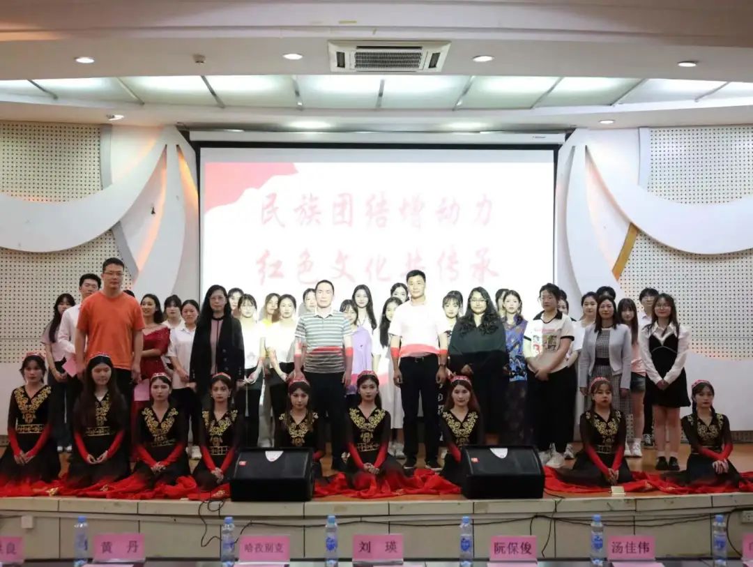 江科网讯(通讯员 汤佳伟)为传承弘扬红色文化,深化民族团结进步,5月25日晚,教育学院红色文化班级21本小学教育4班、民族预科班、21本学前教育1班在图书馆报告厅共同举办“民族团结增动力,红色文化共传承”文艺汇演。统战部部长刘瑛,教育学院党委书记阮保俊、党委专职副书记汤佳伟,少数民族专职辅导员、少数民族预科班辅导员、新疆派驻老师代表,红色文化班级辅导员与同学们一同观看表演。