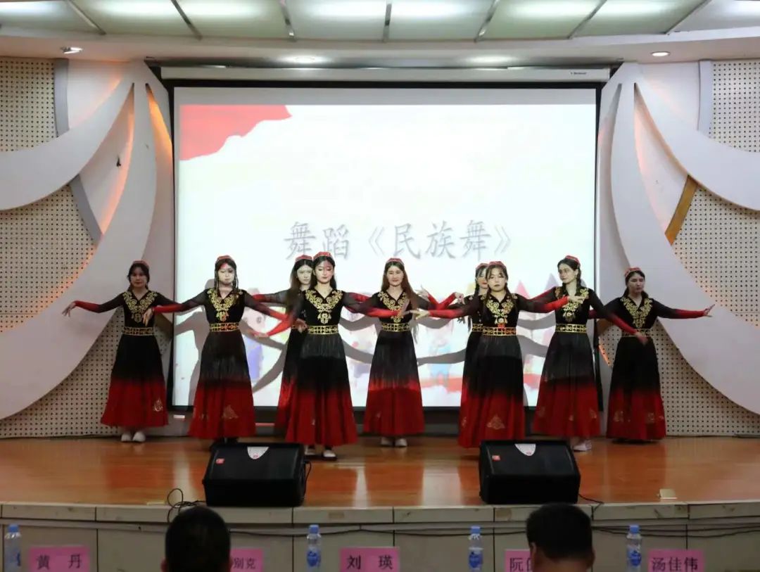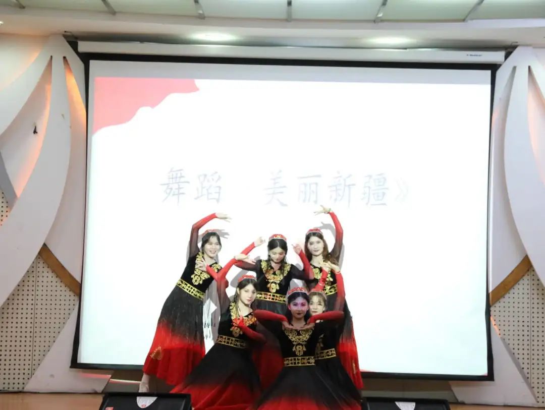 活动现场,来自各红色班级的同学们带来了丰富多彩、民族风格浓郁的表演。朗诵《中华民族一家亲》《中华颂》、舞蹈《美丽新疆》《Dancing shoot》《民族舞》、情景剧《桃李计划》、歌曲《小小吉他》……精彩的演出把晚会的气氛不断推向高潮。晚会还设置游戏《爱的抱抱》和知识竞答环节,同学们热情高涨、积极参与,个个脸上洋溢着灿烂的笑容,现场氛围活泼而又热烈。
