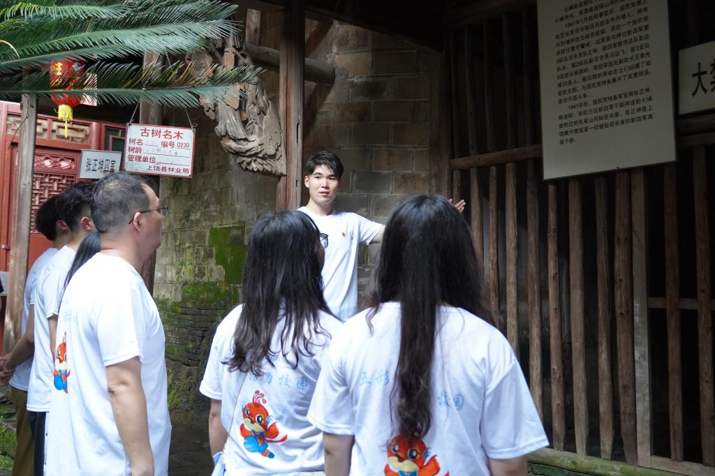 而后,我坐上客车前往弋阳县湖塘村漆工镇方志敏故居。在那等待我们的不是专业的讲解员,而是一位四年级的小朋友。她叫余锦汐,她虽然外表看起来就像一个普通的小女孩,但等她一开口,我们都在心中喑叹她端正的姿态,甜美的声音,激昂的语调。她的讲解非常细致,语调甚至比一些专业的讲解员还要标准。她就生长在这片红色热土上,从小就对方志敏革命精神抱有崇高的敬意,有幸在弋阳县当地的指导和培训下,成为了当地“红领巾”宣讲团的一员,自发地作为当地的小小讲解员传播红色文化,传唱红色精神。在她小小的身上我们看到了大大的志向,对新时代中国的下一辈青年充满了期望,更坚定了我们报效祖国的决心。