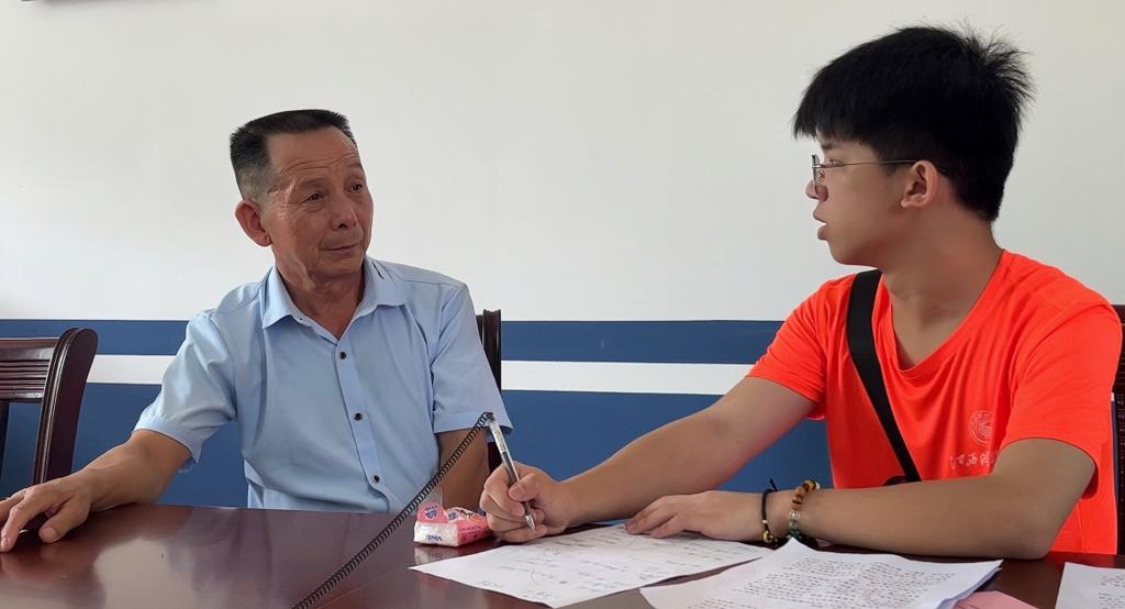 图为:聆听越南自卫战的老兵——曾宪通爷爷讲述革命故事