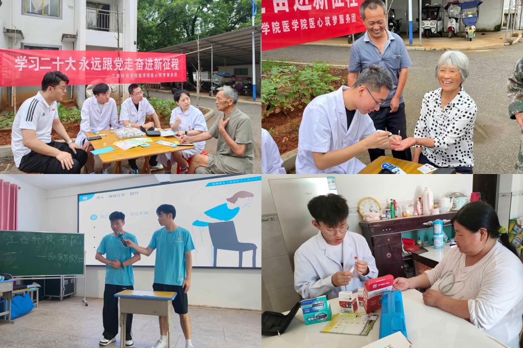 深入实践的同学们,朝气蓬勃、吃苦耐劳,投身基层干着一件件实实在在的事情。医学院江锦服务团、医心筑梦服务团分别为宜春市樟树市店下镇和上饶市万年县湖云乡的村民免费测量血压、血糖,并结合村民身体健康情况和日常生活习惯给出建议,同时向大家科普预防狂犬病、海姆立克急救法、心肺复苏等知识。“希望通过我们的调研,能够在学业压力、亲子关系、父母离异对儿童心理健康发展的问题上提出一些可行性建议。”这是心理健康中心心连心实践团成员最大的目的。