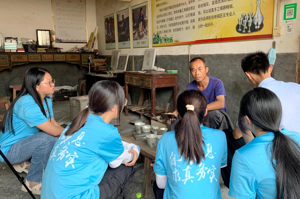 微遗致远筑梦服务队同莲花打锡非遗传承人刘建强师傅进行交流