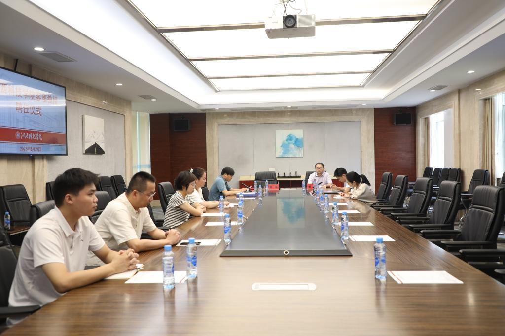 聘任仪式上,现代教育技术中心主任薛飞在主持中介绍谢兵副教授的基本情况和学术成就。科研处处长钟宗林为谢兵颁发聘书,并表示,谢兵副教授在专业领域取得不斐成就,希望他的加盟能为学校开拓创新学术研究,进一步加强我校与南昌航空大学的合作交流,助推我校走好特色发展之路。谢兵表示,此次受聘江科客座教授,倍感荣幸,这既是荣誉,更是责任,将竭尽所能为学校的发展和建设贡献自己的一份力量,也衷心祝愿江科的发展能够更上一个台阶。双方还就科学研究、人才队伍建设等方面进行交流。