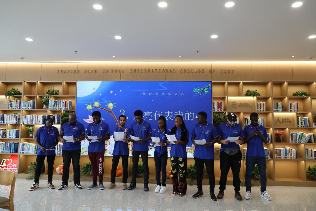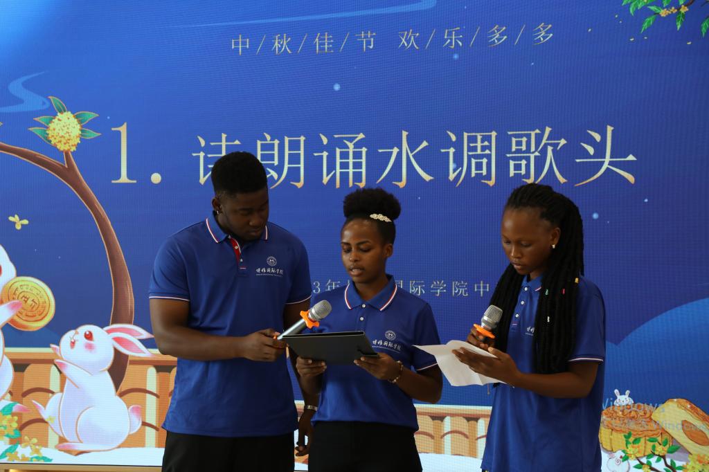留学生们在了解中秋节的来源和风俗、嫦娥奔月的神话故事等内容后,表演了精心准备的节目,2020级留学生科巴、白雪和23级留学生舒心现场饱含深情地朗诵《水调歌头·明月几时有》;2023级留学生安娜、天娜、凯瑟琳、桑达带来的非洲舞蹈表演,让大家感受到了浓浓的热情与魅力;2020级和2023级留学生齐唱中文歌曲《月亮代表我的心》,旋律优美,感情真挚。不同文化在舞台上碰撞出迷人火花。