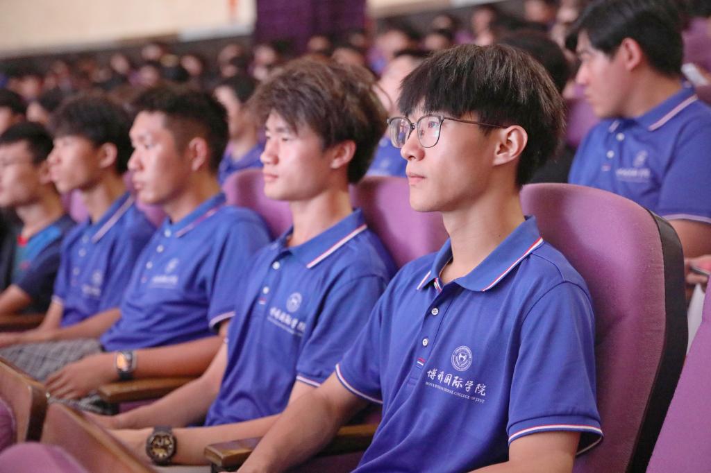 “有上课没打过瞌睡的同学吗?”“有上课没吃过东西的同学吗?”吕文威副校长以“接地气”的提问方式切入主题,结合自身多年的教学经验和个人案例鼓励同学们要充分利用大学时光学知识长本领。他围绕“跨界、勇气、立志”三个方面,期望同学们学习时做到“跨学科、跨圈层、跨文化”,具备更具竞争力的“跨界”知识;做事时做到“有勇气”,有想法要立即去行动;规划时做到“设目标”,树立远大理想和目标。吕文威副校长还向同学们介绍博雅国际学院的师资背景、基本设施等方面的情况,并贴心地为大家准备“最优作息表”。他表示,新时代下的学生不仅要学好本国历史与传统,也要具有全球视野和世界眼光,熟练掌握外语,提升全球表达力和跨文化沟通力,朝着高层次国际化人才不懈努力。希望同学们在博雅珍惜时光、着眼当下、脚踏实地、绽放未来、成就自我!