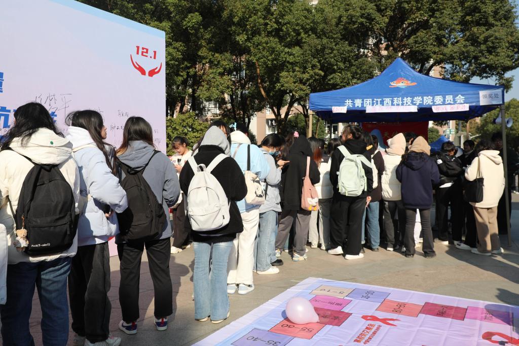 江科网讯(记者 邹珍珍)2023年12月1日是我国第36个“世界艾滋病日”,今年的宣传主题为“凝聚社会力量 合力共抗艾滋”。当天,由江西科技学院主办,中国性病艾滋病防治协会、医务所、医学院、阳光天使服务团协办的2023年“世界艾滋病日”宣传教育活动在学校蓝天购物广场举行。