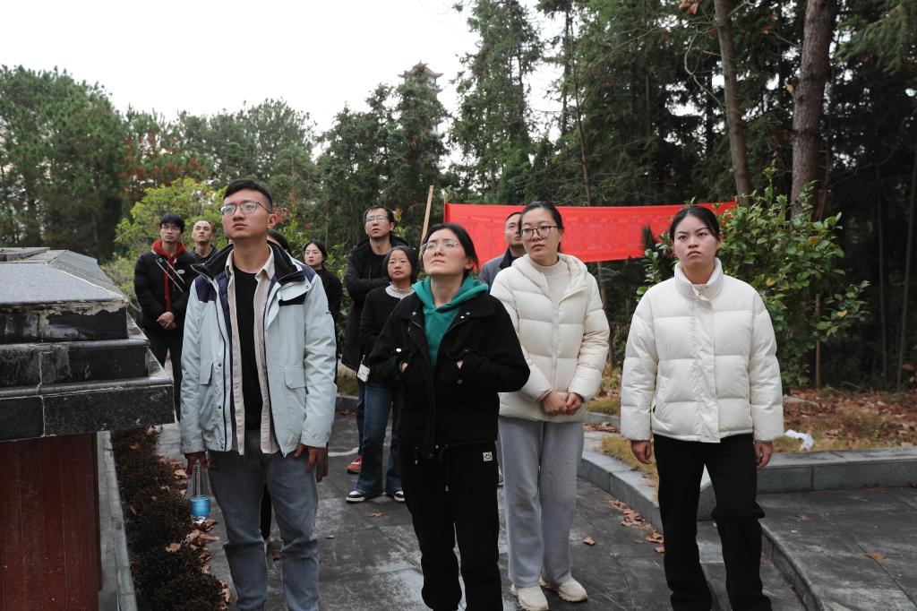 江科网讯(通讯员 黄星星)为全面贯彻落实党的二十大精神,扎实推进学习贯彻习近平新时代中国特色社会主义思想主题教育,12月10日,马克思主义学院院长王玲玲组织部分思政课教师前往武宁革命烈士陵园开展“瞻仰烈士陵园 缅怀革命先烈”实践研修活动。