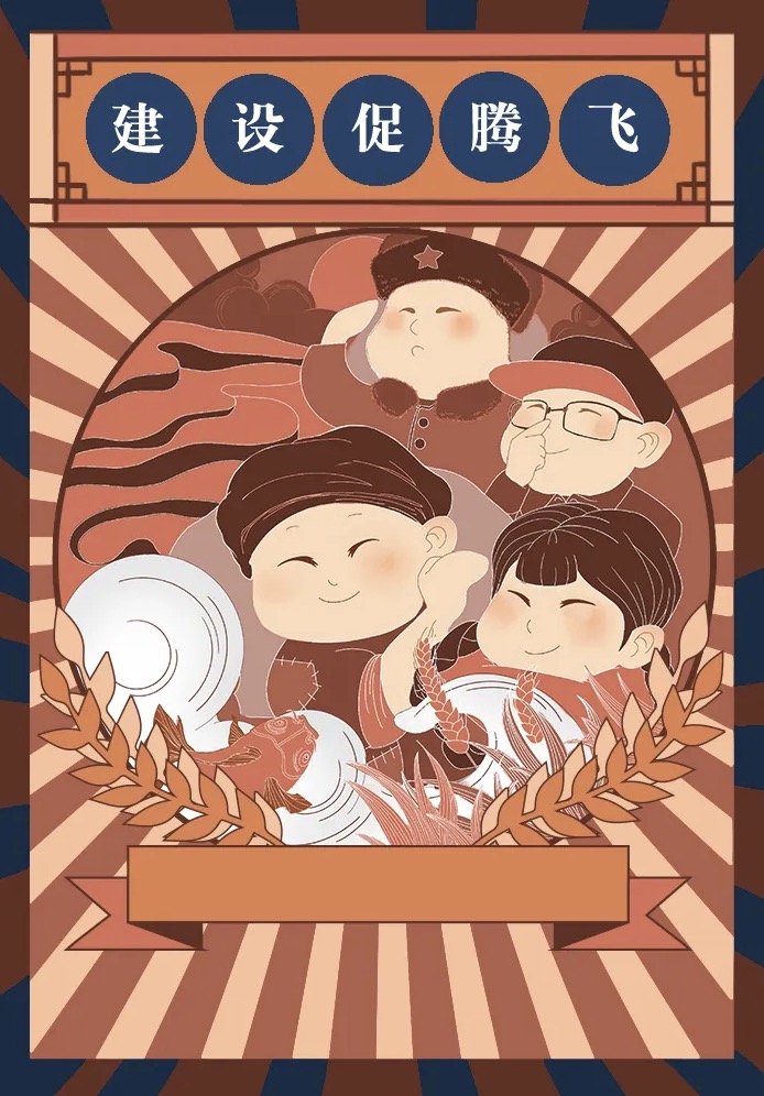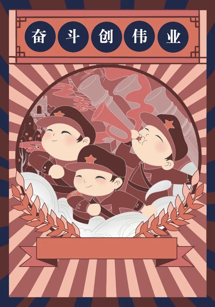 作品简介:插画主要描绘了80 年代人们的一个生活和劳动的状态以及对未来满怀期望的憧憬,不忘初心,牢记使命。