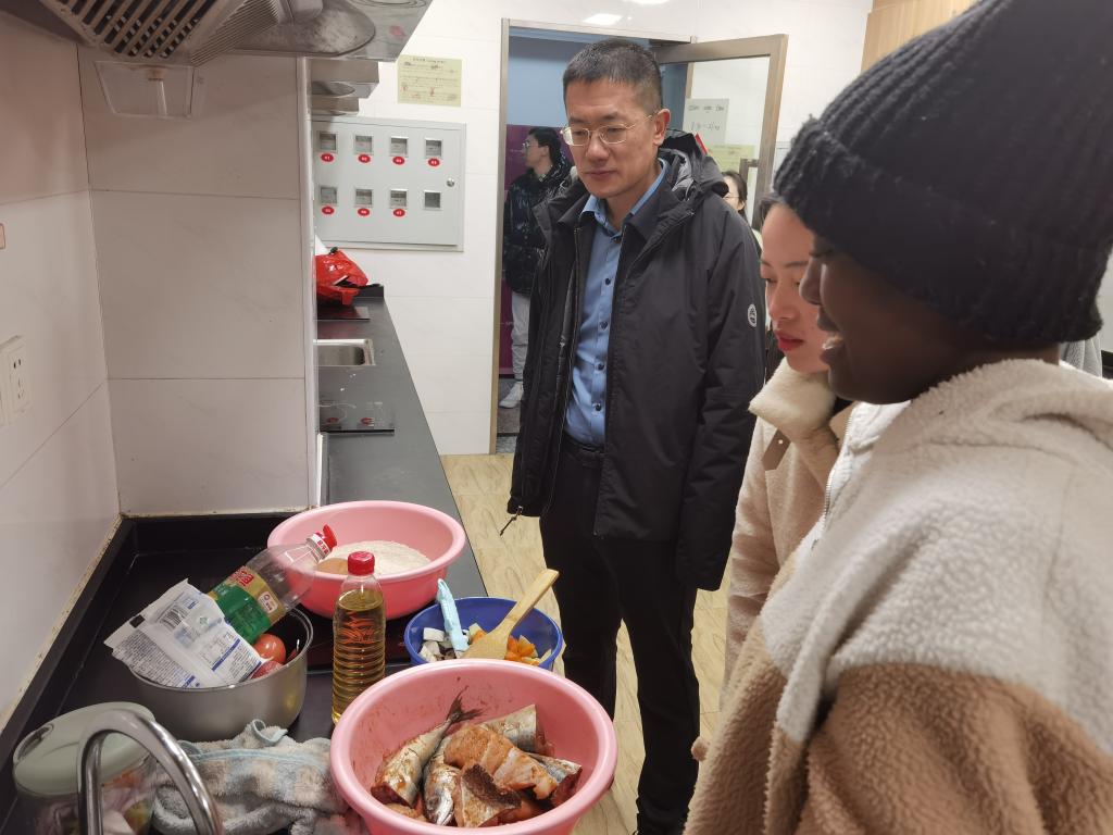 走访中,吕文威副校长与同学们亲切交谈,详细了解留学生日常生活、饮食习惯、兴趣爱好等情况。他表示,学校高度关心留学生成长,未来,将尽可能提供更多支持和帮助,确保每位留学生都能在学校安心学习生活。他嘱咐同学们新学期要有所规划,以新录取哈佛大学2018级留学生艾迪同学为榜样,努力学习;要积极参与校园活动,丰富课余生活,拓展国际视野;要多与中国同学交流,主动融入中国社会,提升中文水平;要加强体育锻炼,增强体质,保持健康体魄。最后,他强调,要注意人身和财产安全,提升消防安全意识,遵守学校各项规章制度,共同维护校园安全和稳定。