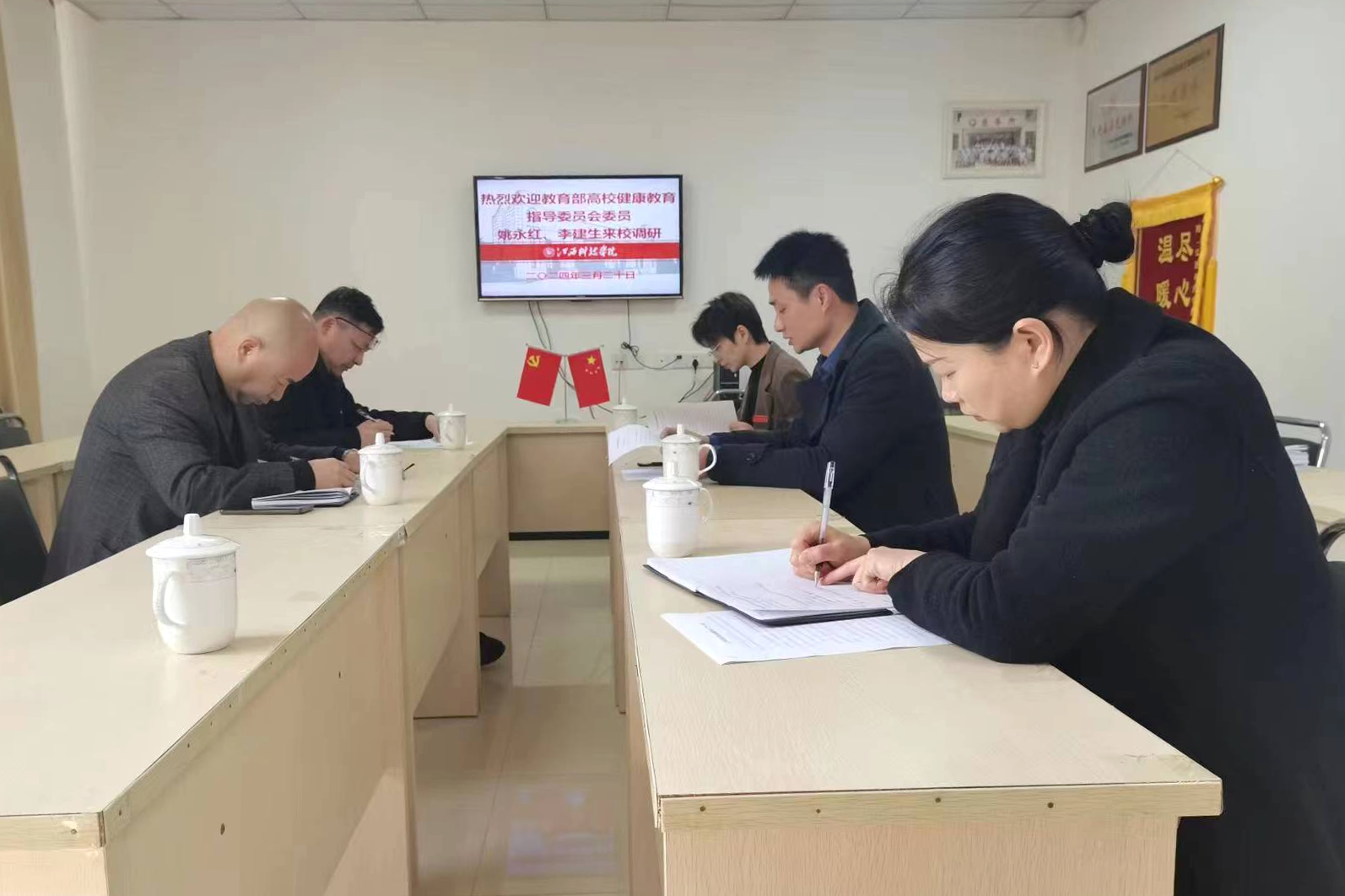 江科网讯(通讯员 李雪平)3月20日上午,教育部高校健康教育指导委员会委员姚永红、李建生来我校调研高校健康教育工作,在医务所三楼会议室开展调研会。医务所所长庄义泉、心理健康中心主任杨玲琪及相关工作人员参会。