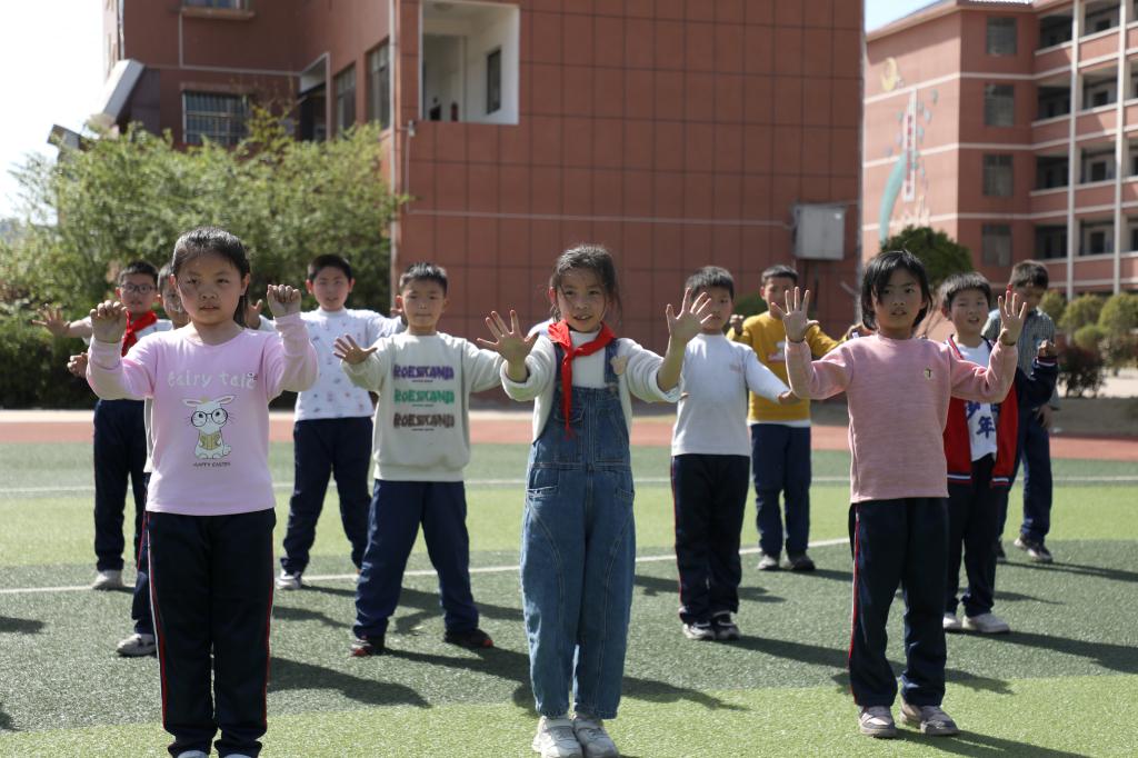 来到学校后,志愿者们便开始了紧凑而充实的授课。“如果感到开心你就拍拍手……”“这是我们黄昕妤同学们画的手指画,你们看像什么呀……”“好,大家跟着节拍跳起来,一二三四……”教室内、操场上,教师们自备丰富的教具、学具,或采用情境教学法,或通过游戏互动形式,积极调动孩子们的学习热情,以独特的感染力和新颖的教学设计使课堂充满生机。