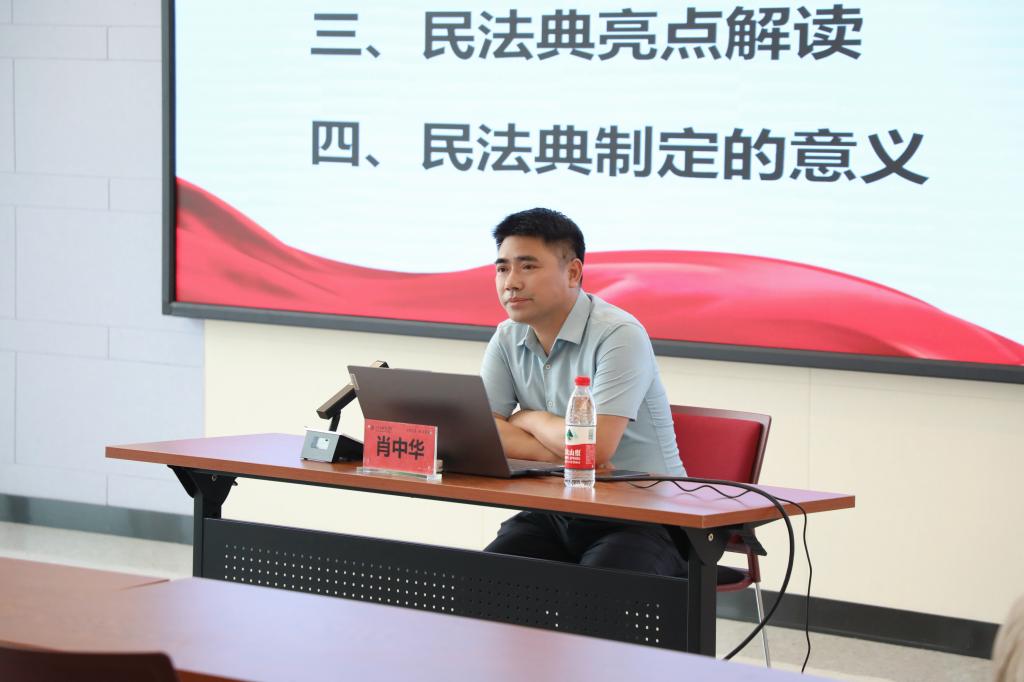 讲座中,肖中华教授用平实的语言、生动的案例,为现场同学们介绍了要广泛开展民法典普法工作和把民法典纳入国民教育体系的原因,以及其中对青少年的教育为什么又是极其重要的一环等内容。他从我国民法典发展历程、我国民法典框架、民法典亮点解读、民法典制定的意义四个方面进行阐释,同时以《法国民法典》《德国民法典》等为例深刻揭示了民法典的编纂与出台是新时代中国特色社会主义法治进程中科学立法、民主立法、依法立法的重要里程碑,也是全面推进依法治国、加快建设社会主义法治国家,不断提升国家治理体系和治理能力现代化的重大举措。他表示,青年学生是民法典宣传与实践的重要群体,也是建设中国特色社会主义法治体系的重要力量,青年学生应该在实践中积极践行民法典的精神和要求,树立法治观念,增强法律意识。