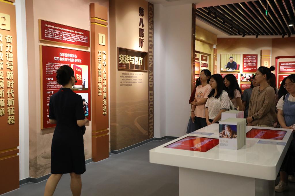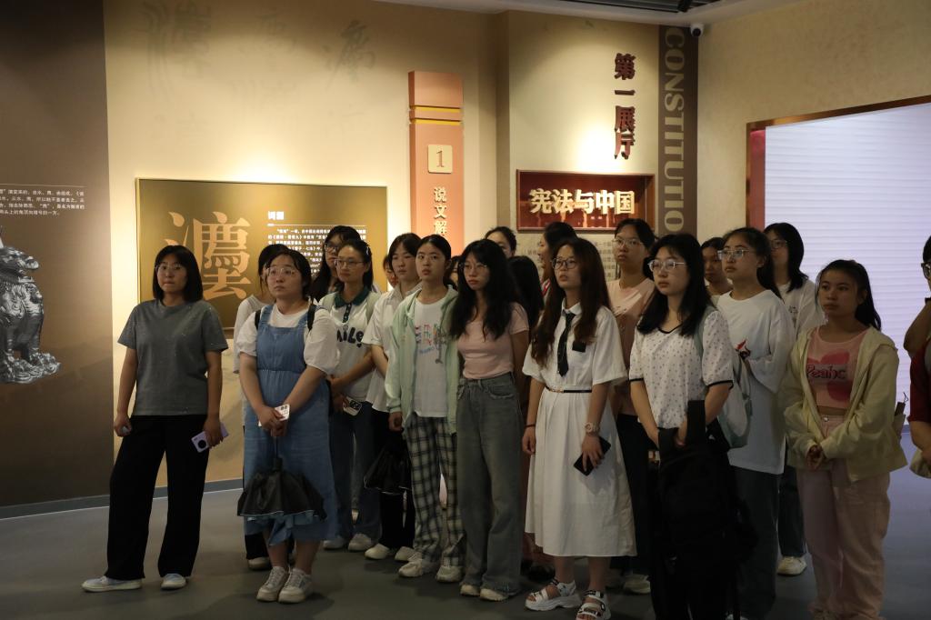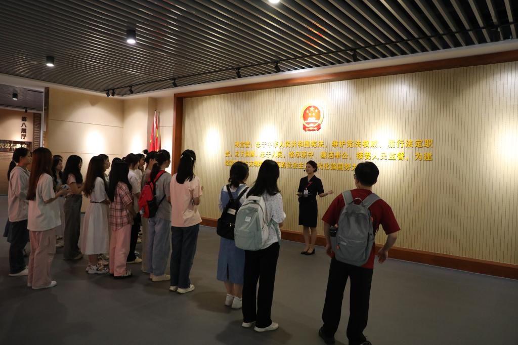 讲座结束后,肖中华教授与学生代表在讲解员的带领下参观宪法教育馆。通过沉浸式法律教育体验,大家切身感受到我国法治建设发展的生动历史和取得的巨大成就,深刻体悟到法律精神。