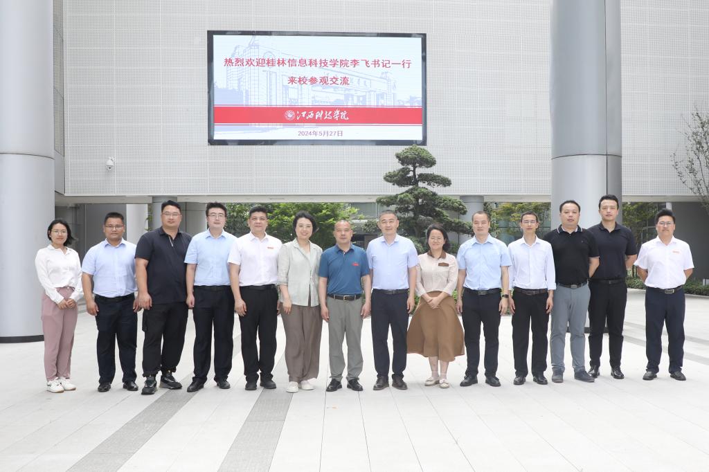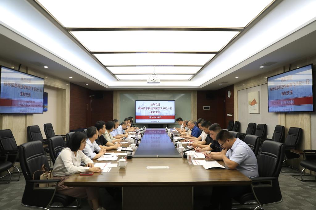江科网讯(记者 何强江 刘莹)5月27日上午,桂林信息科技学院党委副书记李飞带队来我校交流调研,受到校党委副书记、副校长闵桂林的热情接待,双方在行政南楼第三会议室开展座谈会。