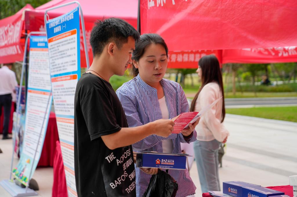 活动现场,工作人员通过发放《劳动保障维权口袋书》、《社会保险法》、就业之家“找工作”服务手册等宣传资料,从签订劳动合同,履行劳动合同、变更劳动合同和解除劳动合同等四个方面向同学们普及了劳动法律法规相关知识,提醒同学们在择业和就业时擦亮眼睛,警惕套路骗局。同时向同学们介绍“5+2就业之家”,围绕就业援助、创业扶持、职业技能培训等方面向同学们介绍就业创业政策。