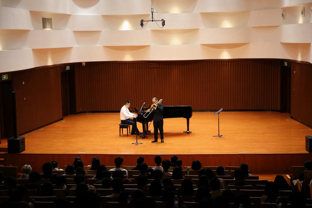 江科网讯(实习记者 熊舒函清 林羽彤)5月30日晚,“求真·清和夏韵”管乐独奏、重奏音乐会在求真音乐厅举行。此次音乐会集合了多位杰出的管乐演奏家,其精湛的技艺和丰富的表演曲目,为现场观众奉献一场难忘的音乐盛宴。