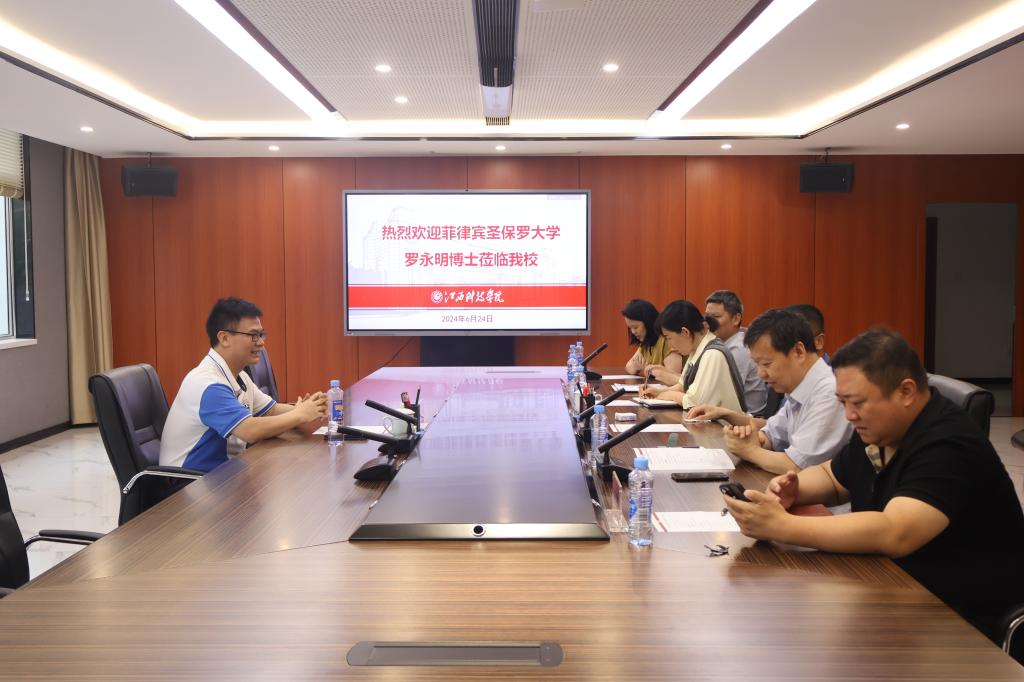 江科网讯(通讯员 洪刘君钰)6月24日,菲律宾圣保罗大学(以下简称:圣保罗大学)国际交流学院院长罗永明博士来我校洽谈合作事宜。副校长吕文威在行政南楼第五会议室热情会见罗永明博士。国际交流合作与交流处、管理学院、财经学院、教育学院、博雅国际学院相关负责人参会。