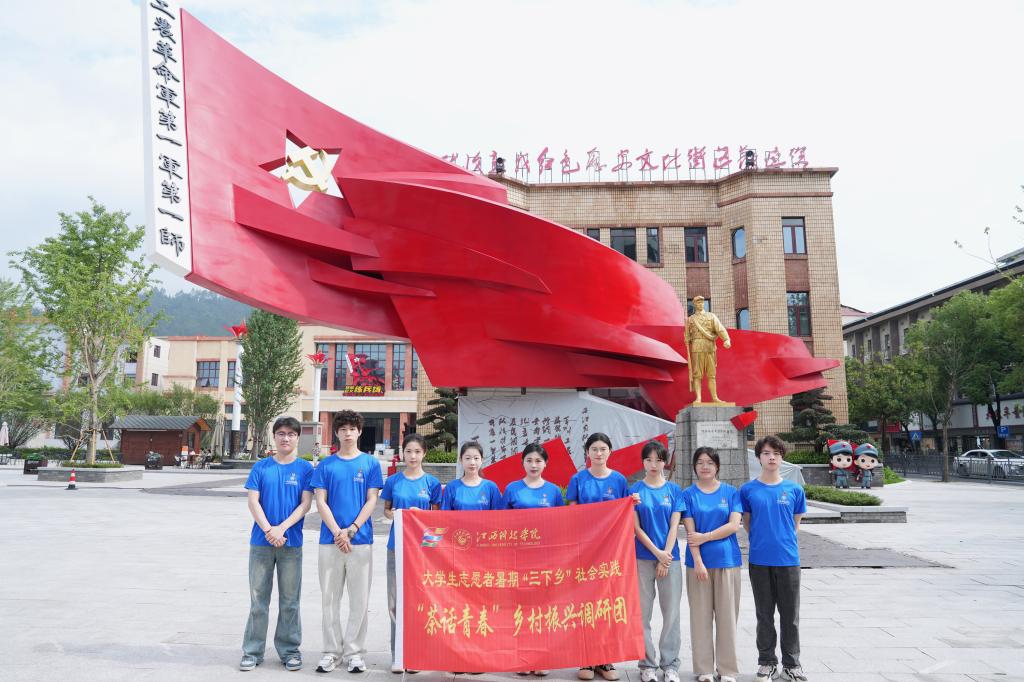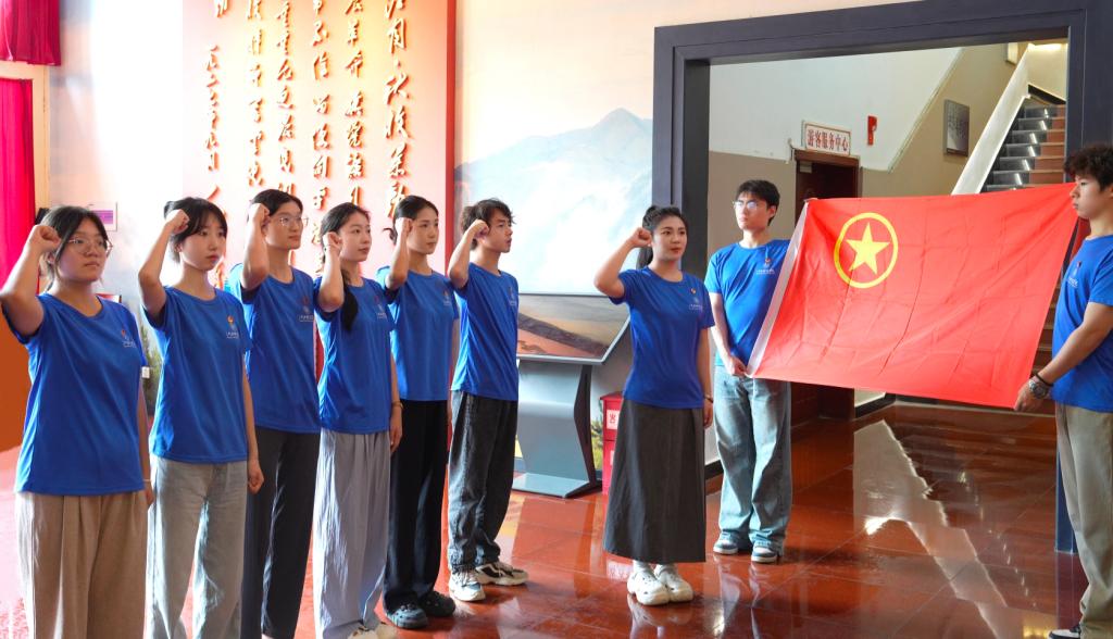 江科网讯(实习记者 杨光)我志愿加入中国共产主义青年团,坚决拥护中国共产党的领导,遵守团的章程,执行团的决议......”在修水县秋收起义纪念馆的铜像下、在鲜艳的团旗前,“茶话青春”乡村振兴调研团全体团员高举右拳,庄严宣誓,用铿锵有力、掷地有声的铮铮誓言,表达了团员青年对党的无限忠诚和为党的事业奋斗终生的决心。