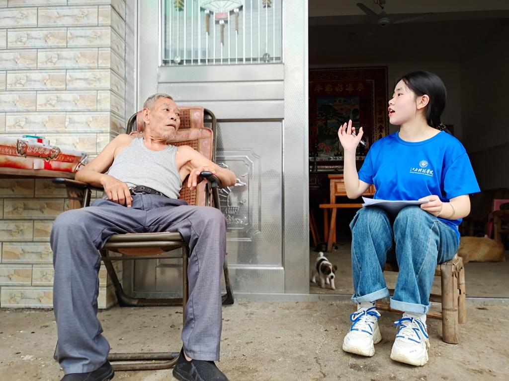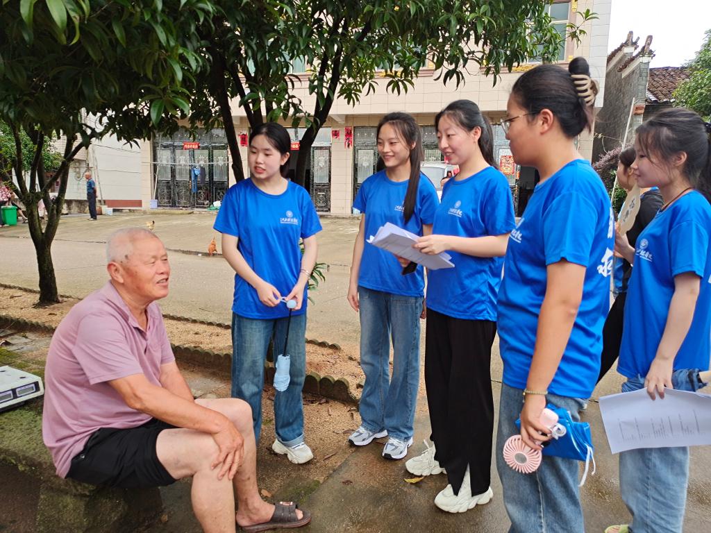 雨后的稻田,如同一幅富有生机的水墨画,晶莹的雨滴挂在嫩绿的稻叶上,闪烁着清新的光芒。在下聂村,团队走进老人家里耐心地询问相关情况。比如:是否单独在家?子女是否每年带领父母进行体检?如何度过空余时间?是否每天进行锻炼……在走访过程中,团队发现许多长者对老人痴呆症的认知存在不足之处,这为后续的研究积累了一定数据。