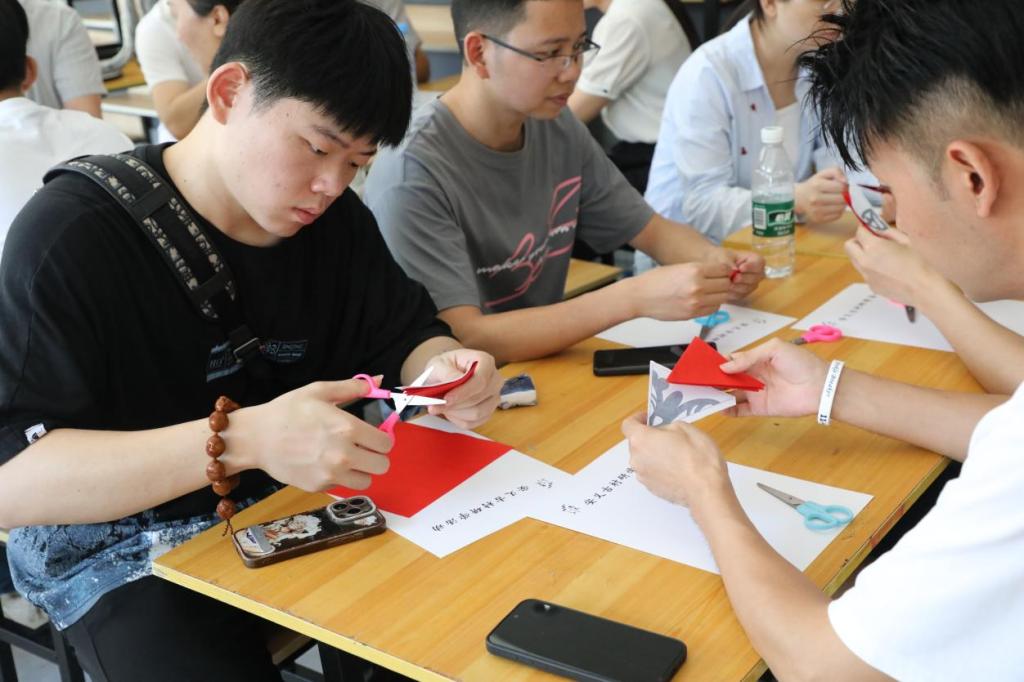 在豫章剪纸馆,大家不仅欣赏了人物画、动物画、团扇画以及立体字剪纸作品,还体验了传统手工剪纸。在剪纸师傅的引导下,一张张简单的红纸经过大家的巧手,变换成各色各样的窗花。