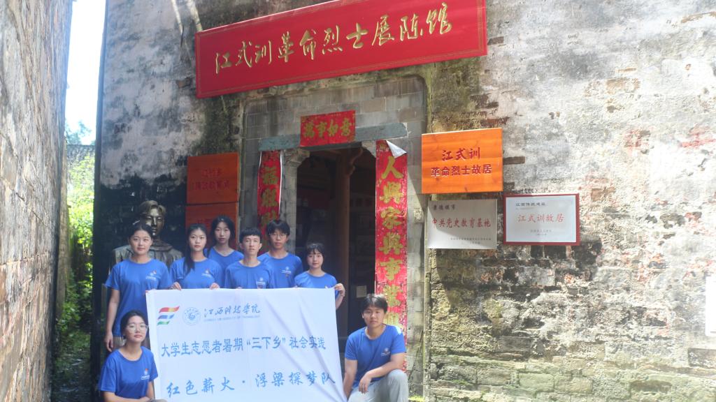 江科网讯 在红色中,感受英雄事迹;在探梦中,传承红色精神。7月4日,红色薪火·浮梁探梦队赴景德镇浮梁县江村乡开展暑期“三下乡”社会实践活动。