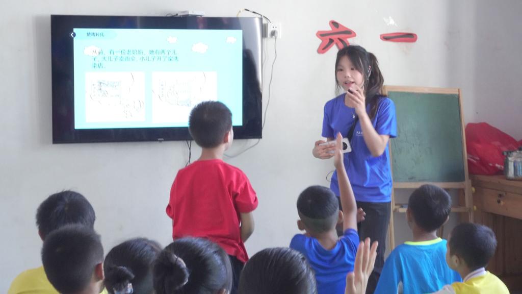 队员们以经典童话故事开场,引导孩子们走进奇幻世界,从《白雪公主》中公主的纯洁善良讲到《三只小猪》中猪三宝的勤劳勇敢,孩子们踊跃分享。在接下来的音乐环节,队员们鼓励孩子勇敢上台,唱出自己喜欢的歌曲。此次活动不仅丰富了孩子们的课余生活,更是以实际行动诠释了当代大学生对农村留守儿童的关爱与支持。